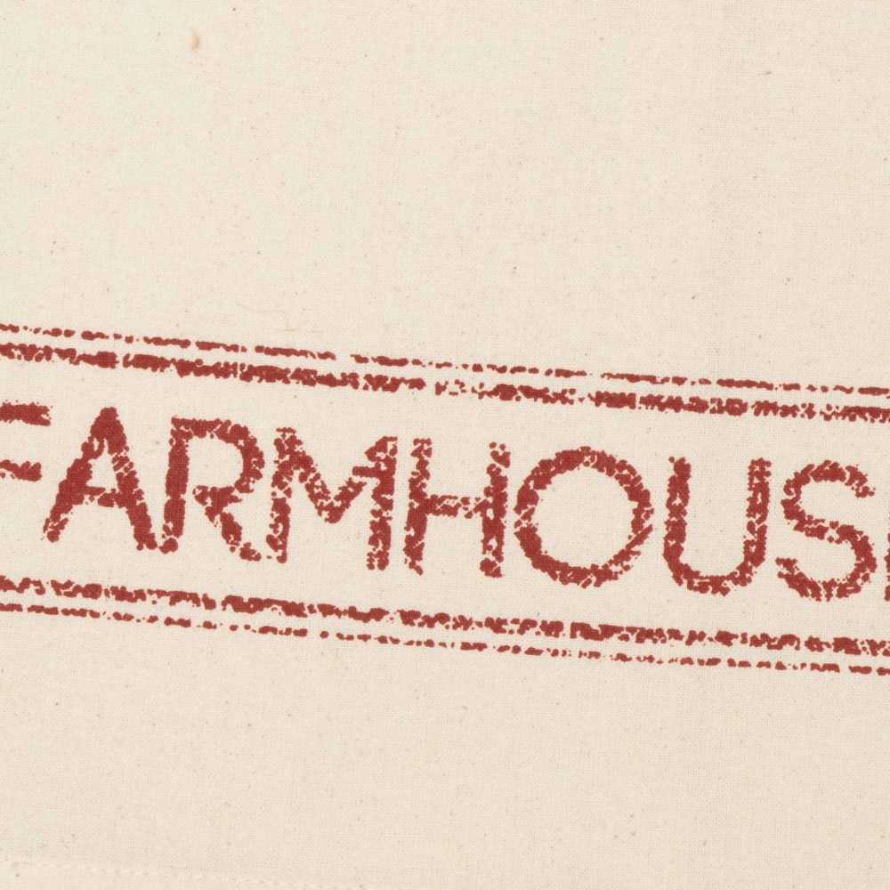 Customize your country kitchen with a "life on the farm" accent. The Sawyer Mill Red Farmhouse Muslin Unbleached Natural Tea Towel 19x28 showcases popular grain sack stripes and the word "Farmhouse" in distressed country red on unbleached tan muslin material. This vintage style tea towel is the perfect decorative piece to match all your rustic kitchen decor.