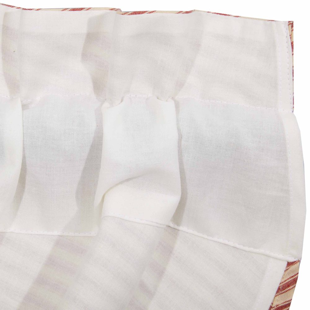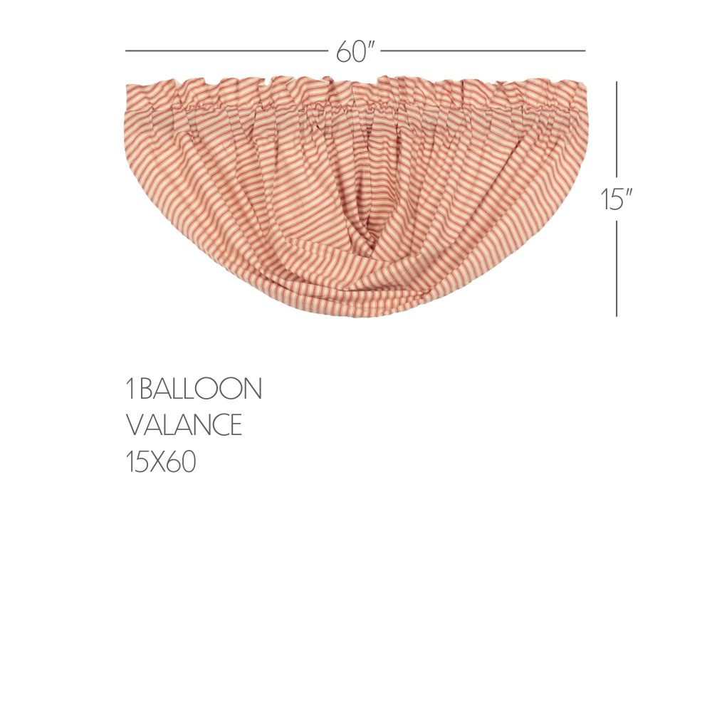 Create a country-chic, vintage look in your farmhouse style home with the Sawyer Mill Red Ticking Stripe Balloon Valance 60x15. Timeless and true, this country curtain features beautifully textured cotton fabric in red and tan ticking stripes offering a simple, romantic feel you can't resist. Coordinates well with the Sawyer Mill Red Ticking Stripe bedding.