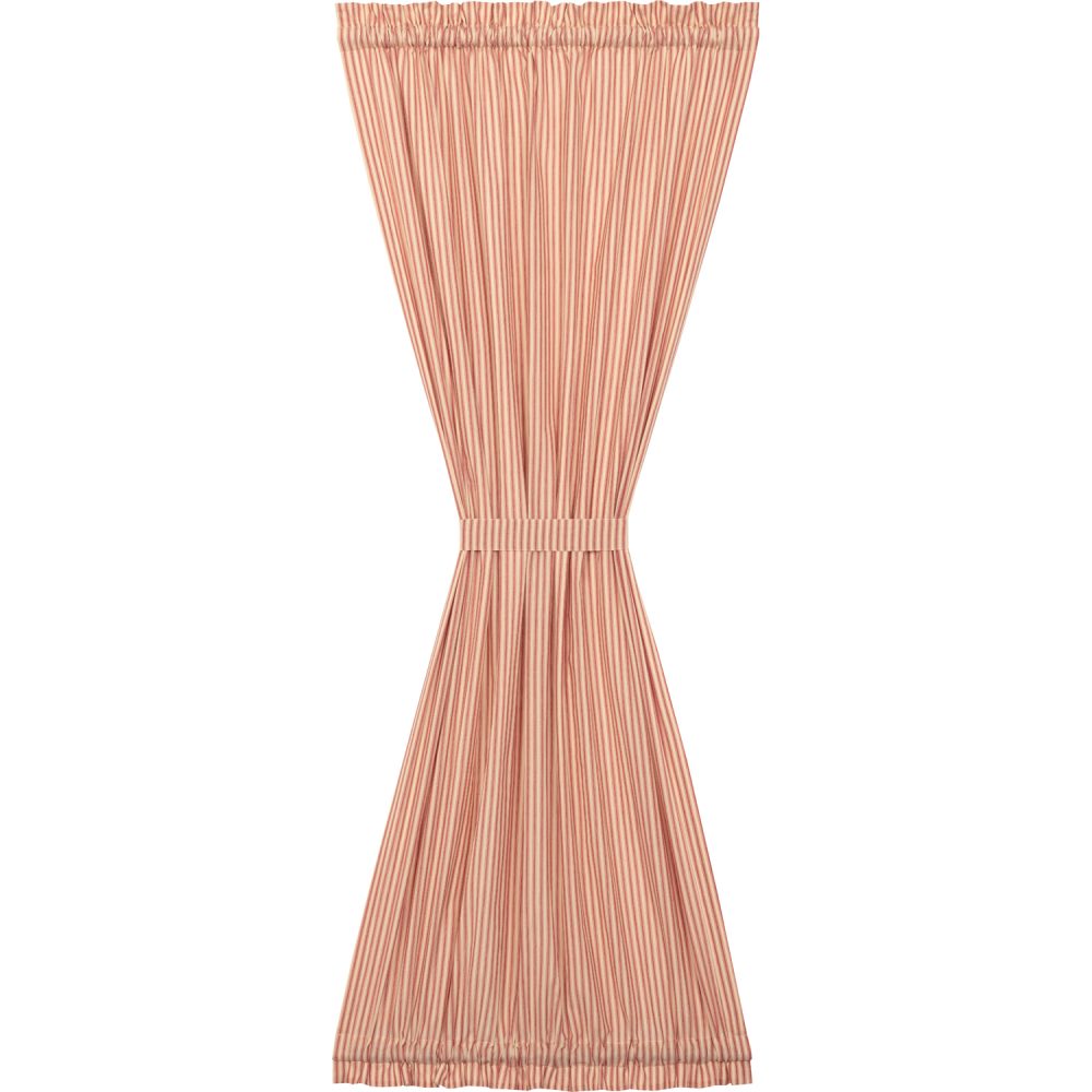 Create a modern farmhouse look for your home. The Sawyer Mill Red Ticking Stripe Door Panel 72x40 features country red and dark tan striped pattern on a quality 100% cotton material. Lined with soft, white fabric, the panel provides privacy while adding style. Includes 1 matching tieback with a button to wrap around the center for a different look and two rod pockets for easy hanging.