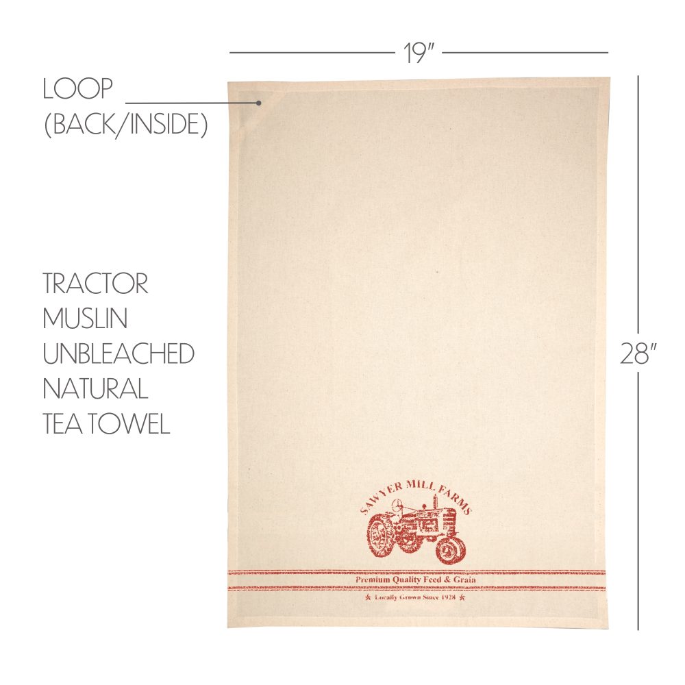 Sawyer Mill Red Tractor Muslin Unbleached Natural Tea Towel 19×28