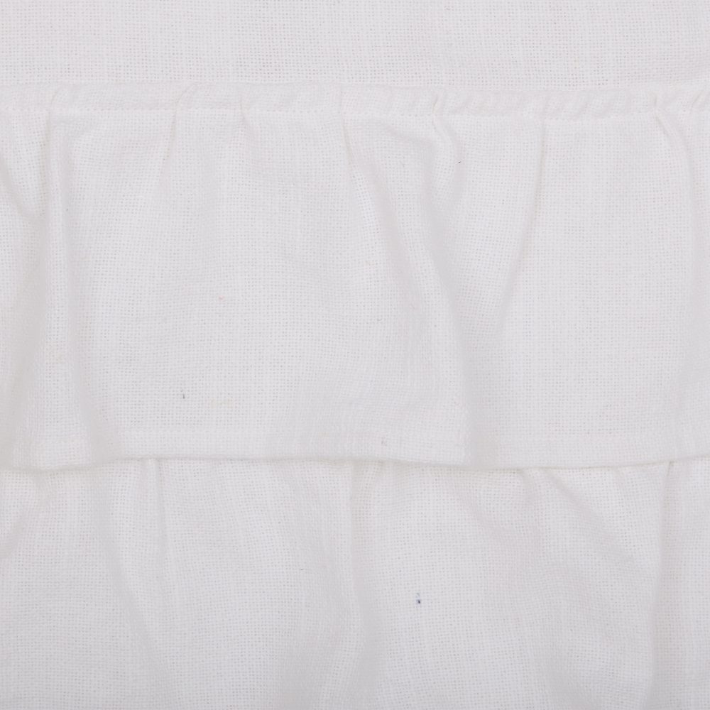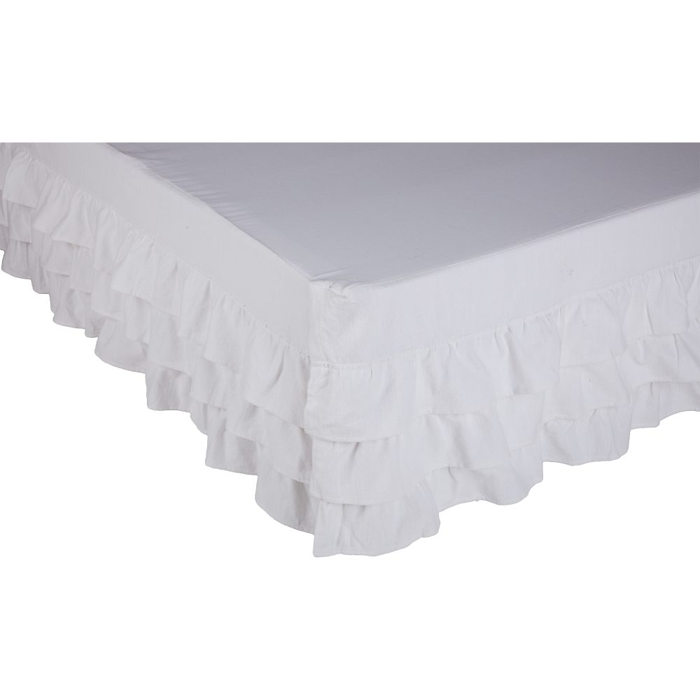 The rustic elegance and casual sophistication of the Serenity fabric make it the perfect addition to your farmhouse bedroom. The crisp white tone is guaranteed to brighten every corner and the luxurious, ruffles layer beautifully over the box spring and bed frame. White is a neutral (It's not even on the color palette) and blends seamlessly with every home, regardless of decorating style and color choices. The Serenity Collection features a substantial-weight cotton that is durable and surprisingly soft to touch. Three rows of single-layer ruffles (4.0L w/2.0 overlap) adorn three sides of the bed skirt, offering flirty, feminine appeal and an opulent excess of fabric. Pair the bed skirt with other pieces in the Serenity Collection for a complementing, curated look. The neutral white fabric easily coordinates with many of our original collections, as well as your existing fabrics and home decor.