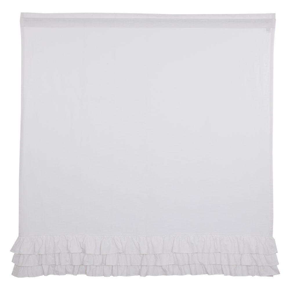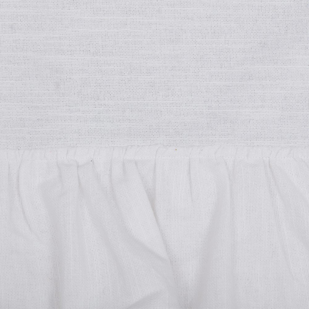 • 100% unlined crisp white cotton. Features gathered ruffles (5.0L w/2.0 overlap) in three rows that adorns the bottom of the panels.