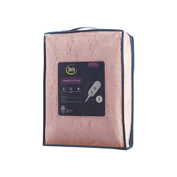 The Serta Malea Shaggy Faux Fur Heated Throw offers a rich textural touch to keep you warm and cozy. This heated throw flaunts an ultra-soft shaggy fur face that flips to a plush reverse to create an incredible soft look and feel. A single controller has 5 heat settings to easily find your preferred comfort level and the 3 hour auto shut off timer ensures your safety. Machine washable for easy care, this shaggy faux fur heated throw is great for bundling up in on those cold nights.