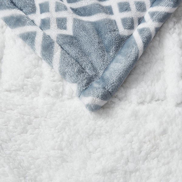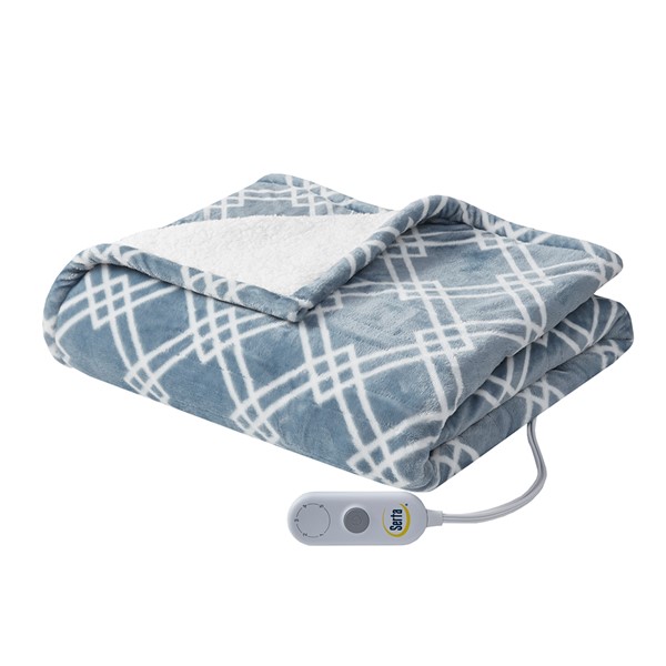 Serta Printed Plush to Sherpa Heated Throw in Blue, 50×60" ST54-0147
