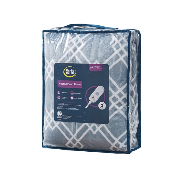 Make any space comfortably cozy with the Serta Printed Plush Heated Throw. This heated throw features an ultra-soft plush face with a geometric print that flips to a cozy sherpa reverse to create rich comfort and a casual look. A single controller has 5 heat settings to easily find your preferred comfort level and the 3 hour auto shut off timer ensures your safety. Machine washable , this plush heated throw provides relaxing comfort and exceptional warmth to easily wrap around yourself.