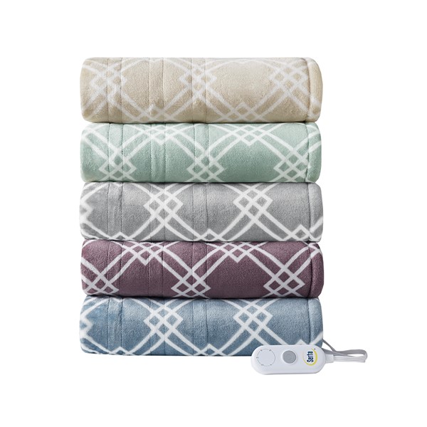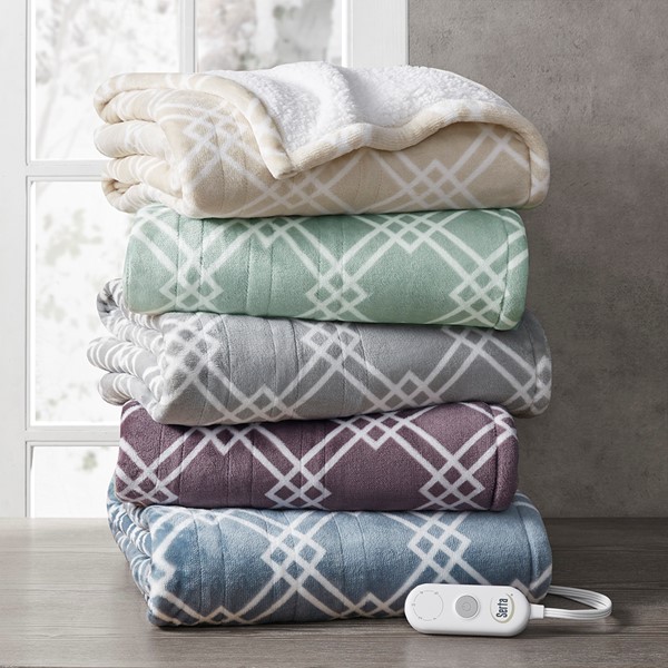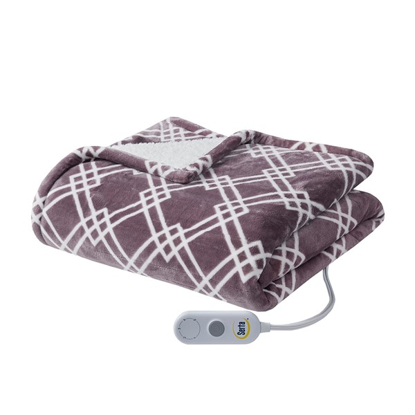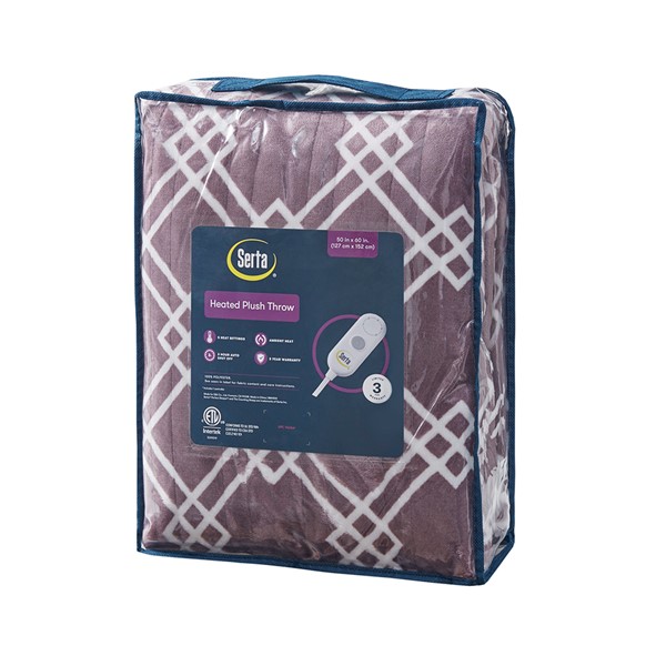 Make any space comfortably cozy with the Serta Printed Plush Heated Throw. This heated throw features an ultra-soft plush face with a geometric print that flips to a cozy sherpa reverse to create rich comfort and a casual look. A single controller has 5 heat settings to easily find your preferred comfort level and the 3 hour auto shut off timer ensures your safety. Machine washable , this plush heated throw provides relaxing comfort and exceptional warmth to easily wrap around yourself.