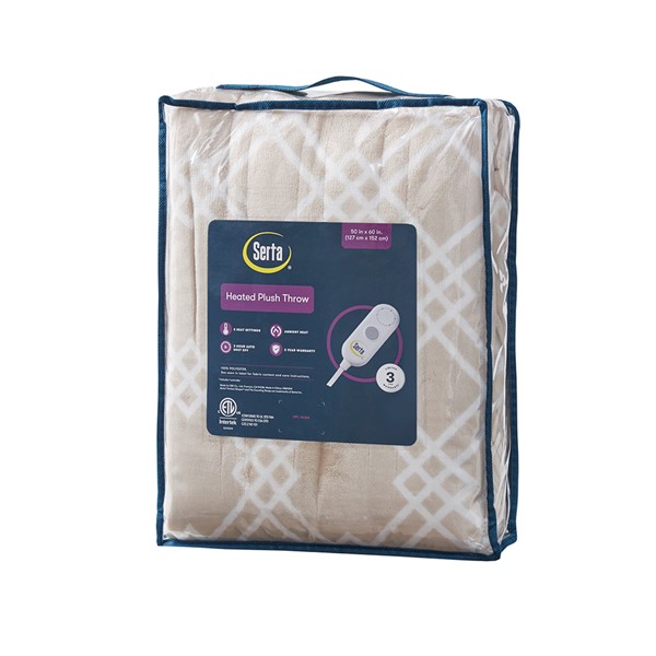 Make any space comfortably cozy with the Serta Printed Plush Heated Throw. This heated throw features an ultra-soft plush face with a geometric print that flips to a cozy sherpa reverse to create rich comfort and a casual look. A single controller has 5 heat settings to easily find your preferred comfort level and the 3 hour auto shut off timer ensures your safety. Machine washable , this plush heated throw provides relaxing comfort and exceptional warmth to easily wrap around yourself.