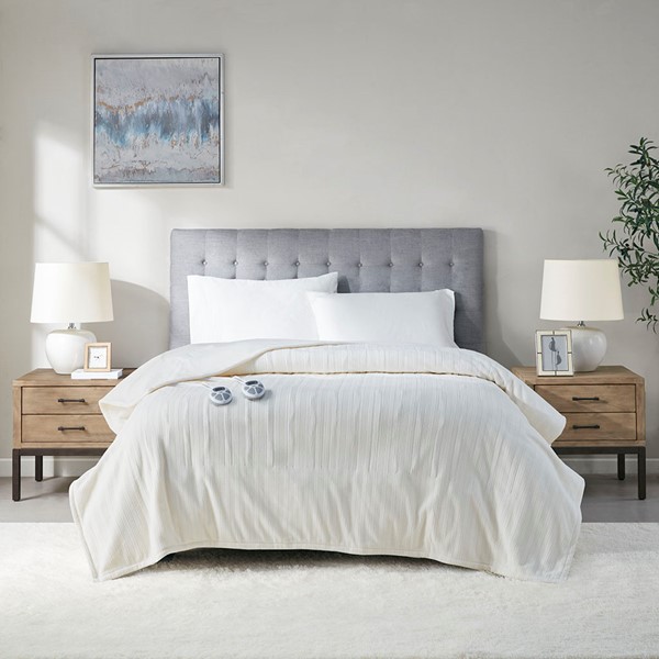 Serta Ribbed Micro Fleece Heated Blanket in Ivory, Twin ST54-0154