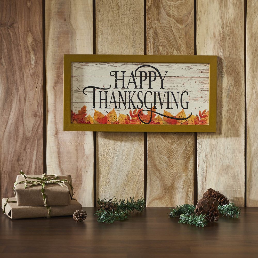 - PRODUCT SPECIFICATIONS & DESIGN: Expertly crafted from durable MDF, this charming 8×16 inch VHC Brands Shiplap Happy Thanksgiving Fall Leaves Wall Sign features a beautifully distressed shiplap design painted in soft country white, warm pumpkin orange, and sun-kissed dark yellow, perfectly complementing its digitally printed “Happy Thanksgiving” sentiment adorned with meticulously detailed leaves, and includes pre-drilled holes for flexible hanging or display on a mantelpiece or console, maintaining its vibrant rustic appeal with just a gentle wipe.