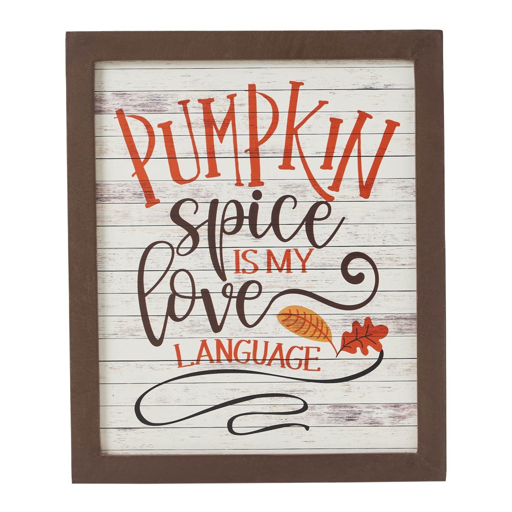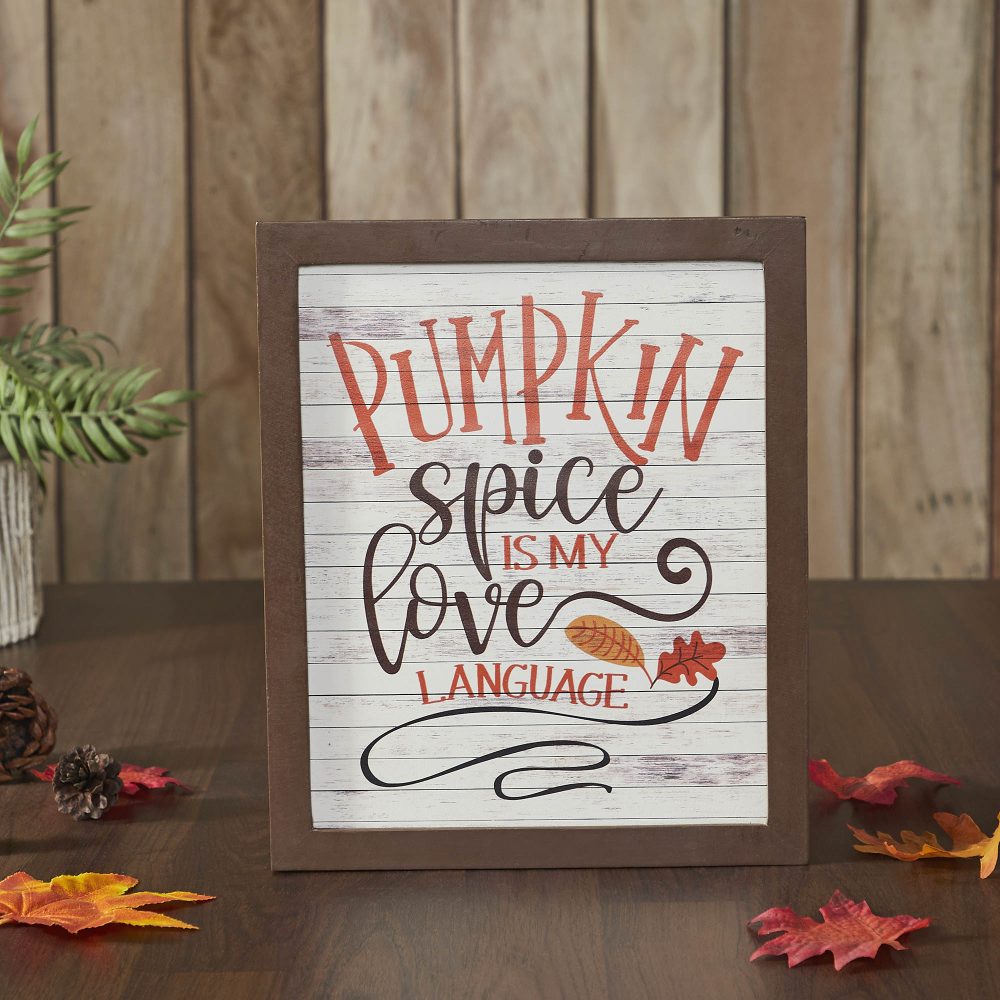 - EXPRESS YOUR FALL PASSION: Instantly infuse any room with heartwarming autumn spirit using this 12×10″ distressed farmhouse sign, charmingly declaring ‘Pumpkin Spice Is My Language’ with versatile display options.