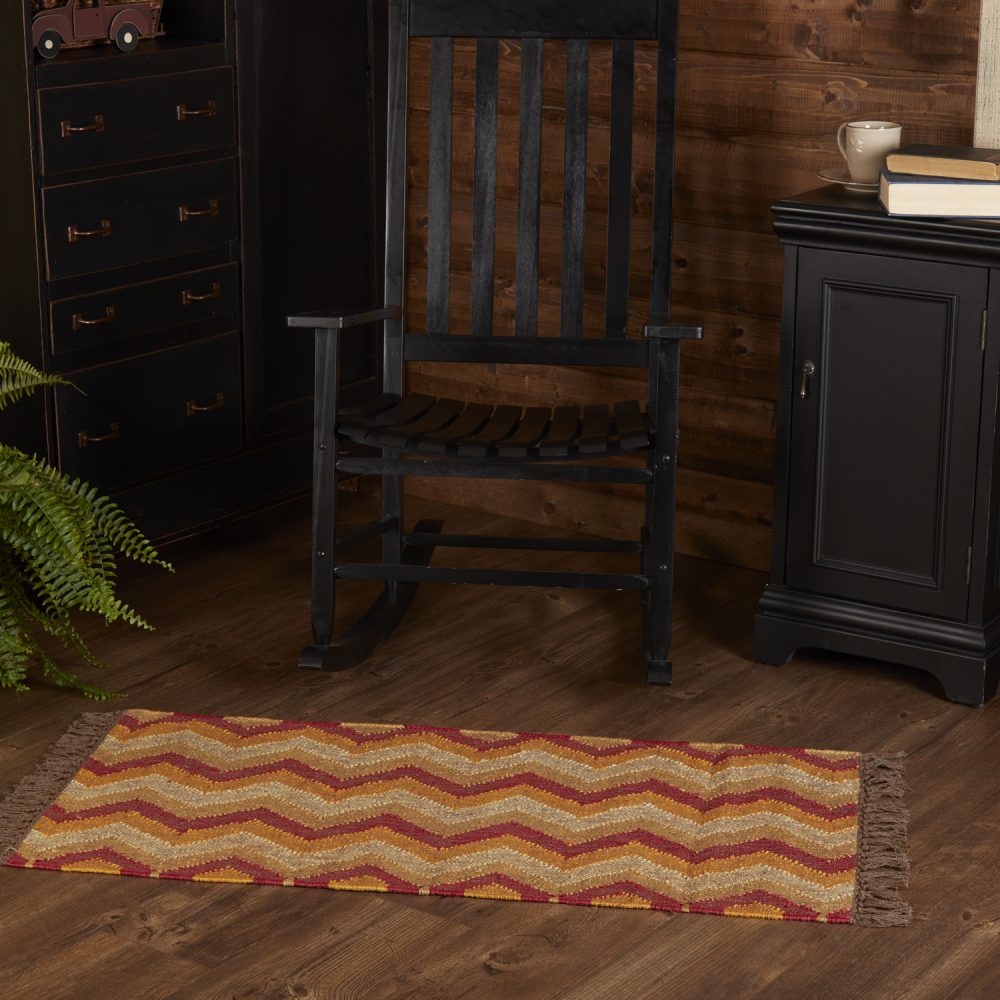 Chevron stripes of fresh red, sunny yellow, with white accents give the Sierra Kilim Rug a colorful, rustic personality. The ancient process of tapestry weaving provides a timelessness yet striking design at the same time. The tassels complement the look. This rug is the perfect addition to any farmhouse decor.