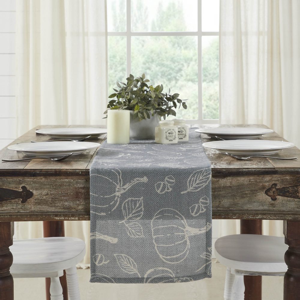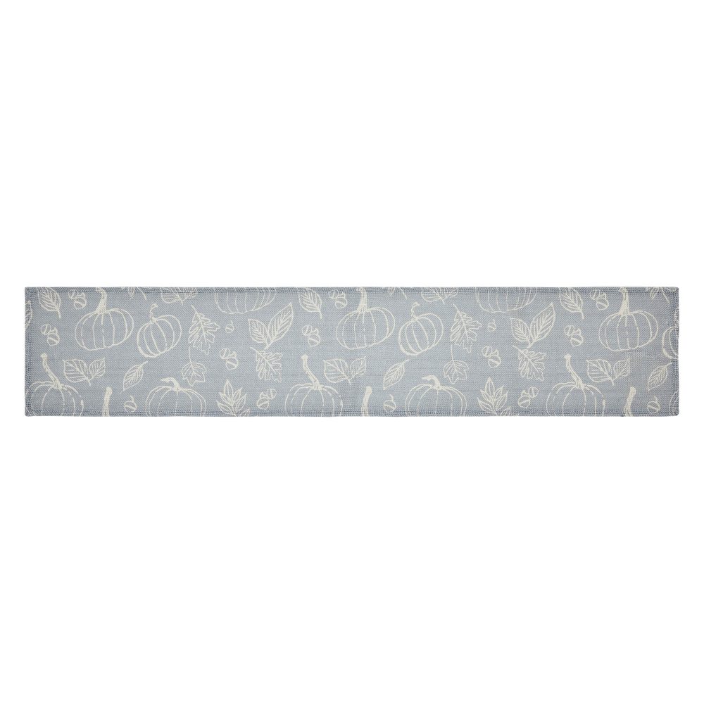 Embrace the heartwarming spirit of autumn and the quiet charm of the countryside with the Silhouette Pumpkin Grey Runner. This inviting 12 by 60-inch runner instantly transforms your dining space into a cozy haven, offering a delightful blend of rustic elegance and whimsical seasonal cheer. Imagine the gentle glow of candlelight dancing across the rich dark grey, highlighting a charming tapestry of ivory pumpkins, delicate leaves, and plump acorns, bringing the bounty of the harvest directly to your farmhouse table. Crafted from durable recycled plastic (PET) for both enduring beauty and practical ease, this Thanksgiving table runner provides a resilient yet soft foundation for your festive spreads. Its unique dark grey base provides a sophisticated backdrop, allowing the intricately detailed ivory motifs to pop with a subtle grace that whispers of timeless cottage charm. Pair this captivating piece with other treasures from the Silhouette Pumpkin Grey Collection by VHC Brands to cultivate a truly cohesive and enchanting autumnal tableau, creating cherished memories around a table dressed in thoughtful, nature-inspired artistry.