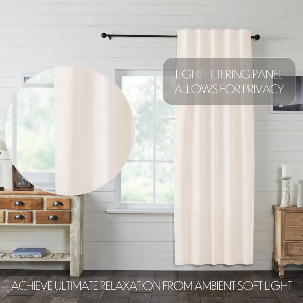 Sturdy, textured fabric meets romantic simplicity in this beautiful window panel. The Simple Life Flax Antique White Panel 96x40 is made from cotton flax linen for a perfectly relaxed and elegant look that matches any country chic decor. Features a soft, white cotton lining to filter sunlight while a rod pocket and optional loops allow for easy hanging.