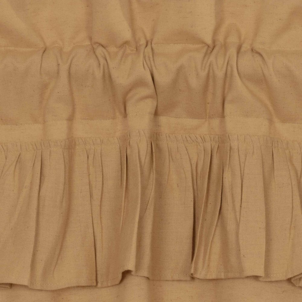 Create the perfectly charming country window of your dreams with these 36 x 36 inch tier-style curtains. Featuring naturally textured khaki linen and romantic ruffling, the Simple Life Flax Khaki Ruffled Tier Set provides just the right balance of privacy and sunshine. Pair with a matching valance or prairie swag for a fully decorated look or alone for a simple pop of texture and character. Also known as cafe or bistro curtains, these are a particularly good fit for decorating vintage kitchens, laundry rooms, and small bathroom windows.