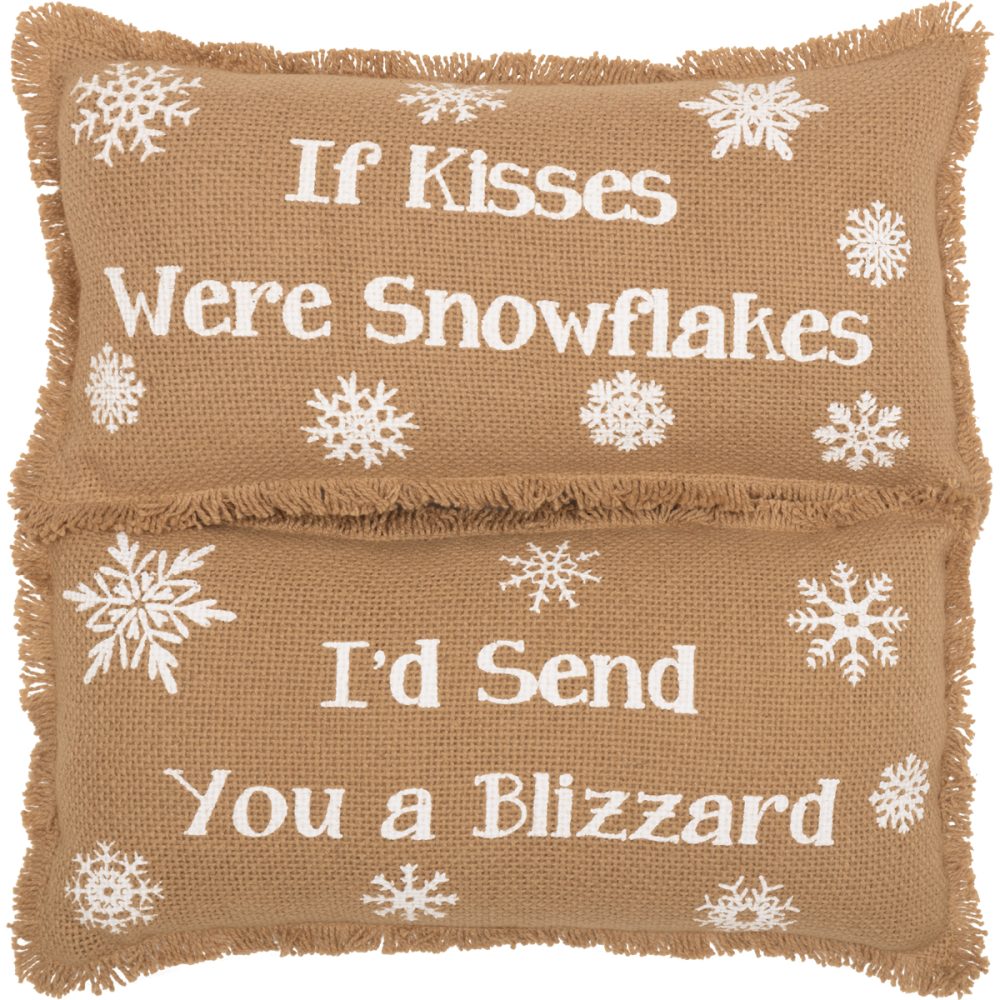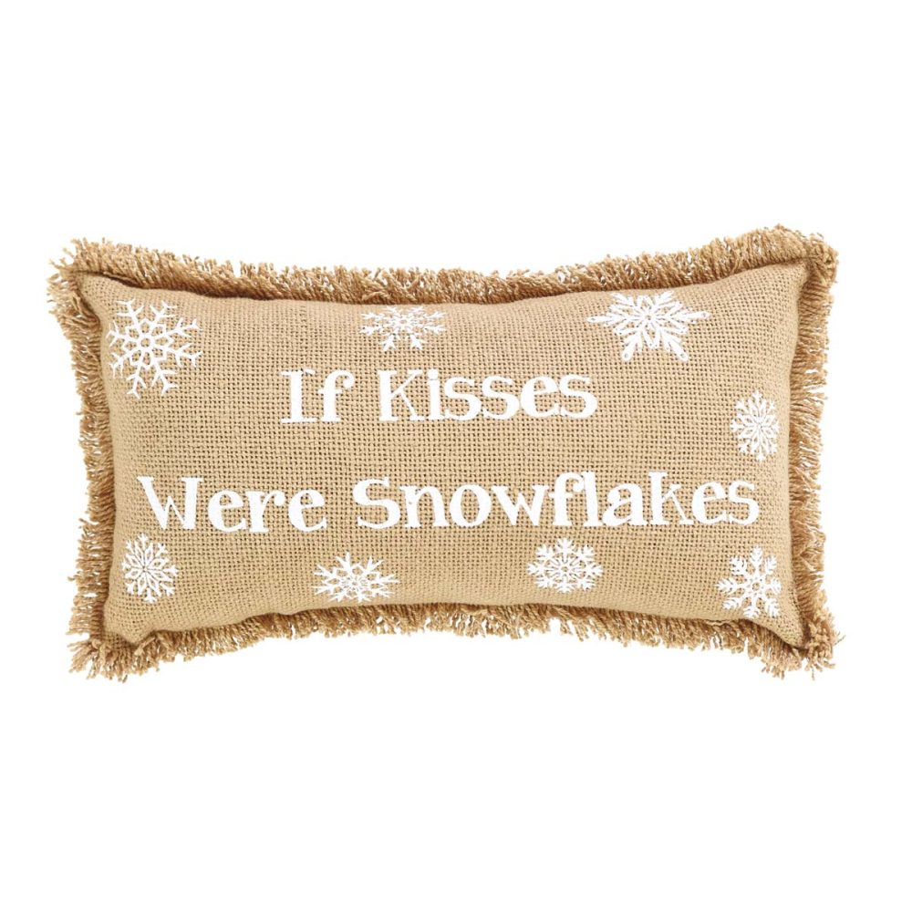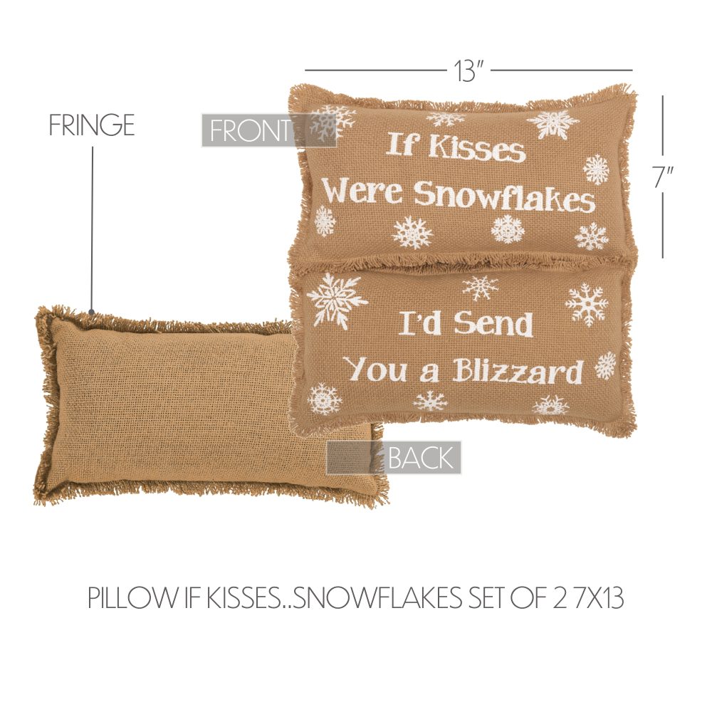 Snowflake Burlap Natural Pillow If Kisses..Snowflakes Set of 2 7×13