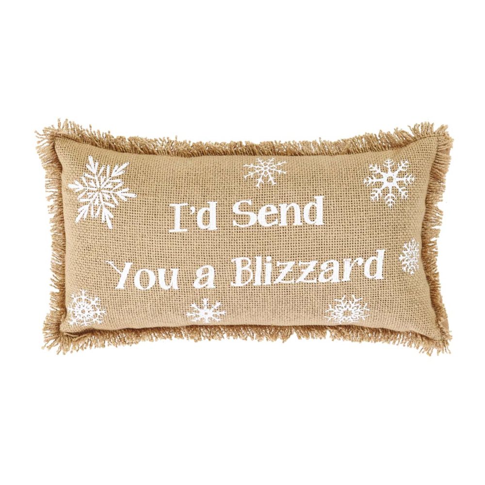 Feeling the love this holiday season? Show it off with VHC's Snowflake Burlap Natural If Snowflakes Were Kisses Christmas Throw Pillow set of 2. You'll get the crafty message of "If snowflakes were kisses, I'd send a blizzard" embroidered in white on the natural color burlap base. To mix it up, simply turn the Christmas pillows around for a simple natural burlap feel for year-round use. The fringed edging adds farmhouse joy to this Christmas pillow set.