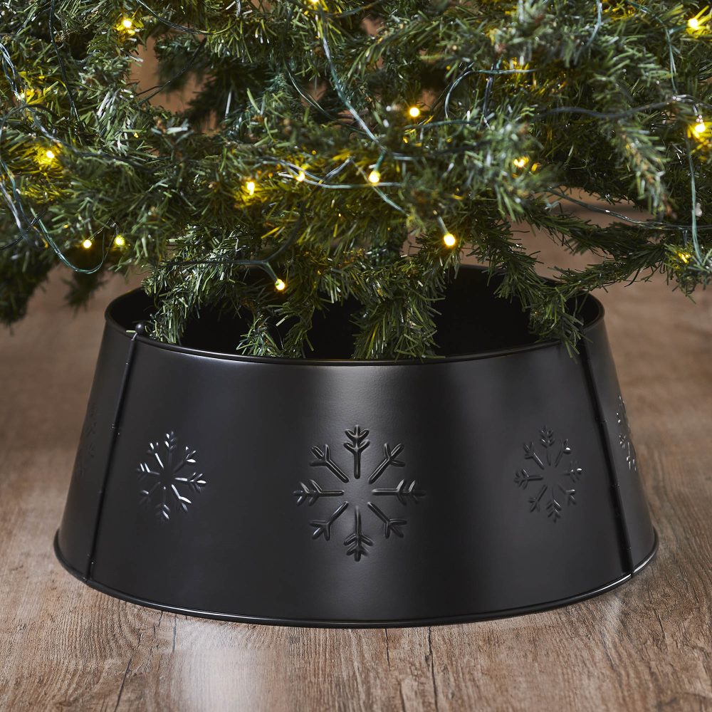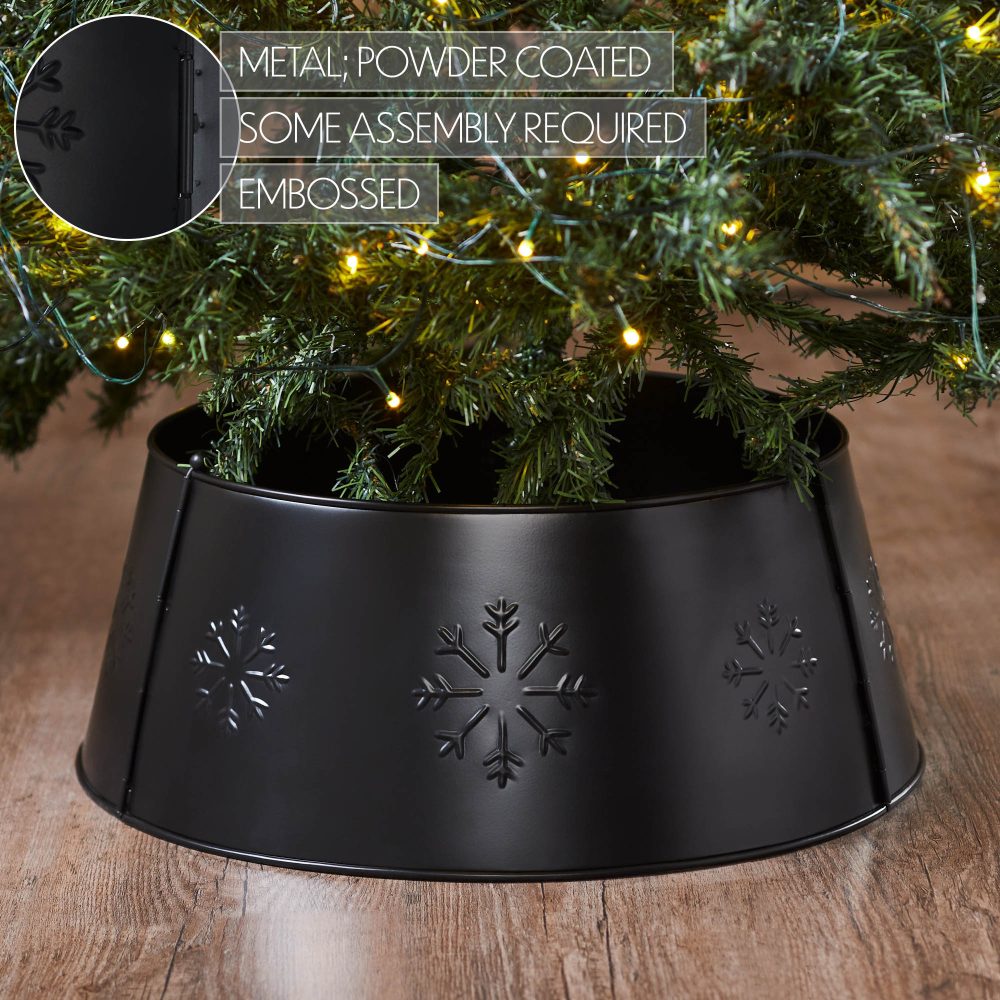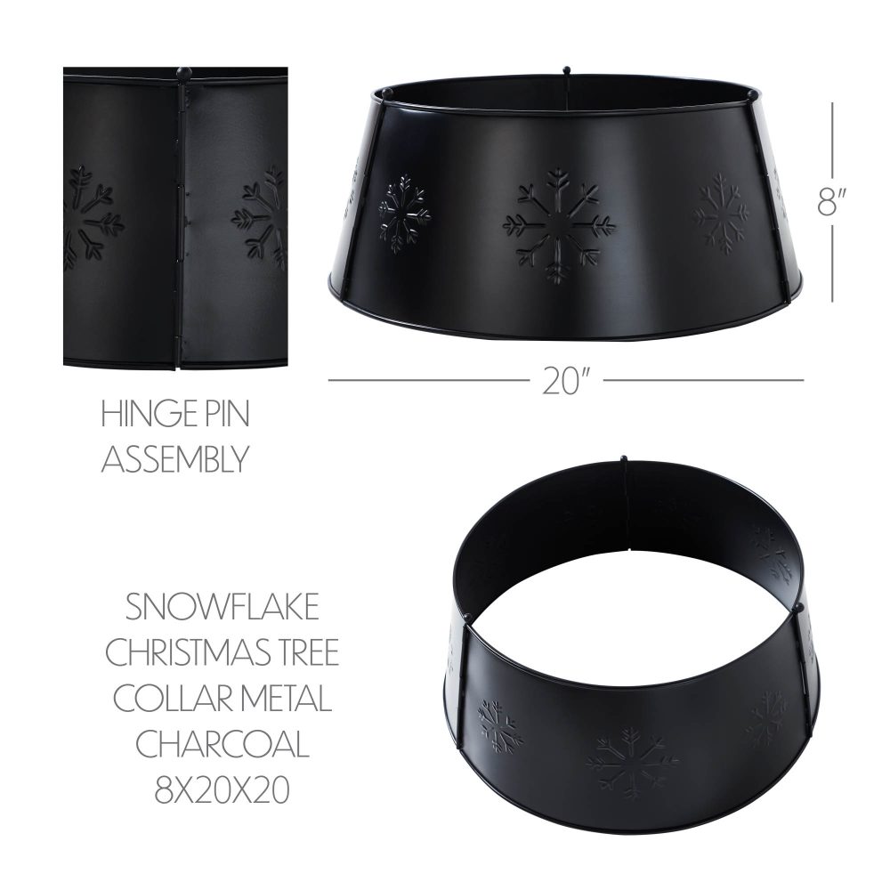 - Introducing the VHC Brands Metal Snowflake Christmas Tree Collar in a stylish Charcoal finish, offering a modern twist to your holiday decor with its sleek and contemporary design.