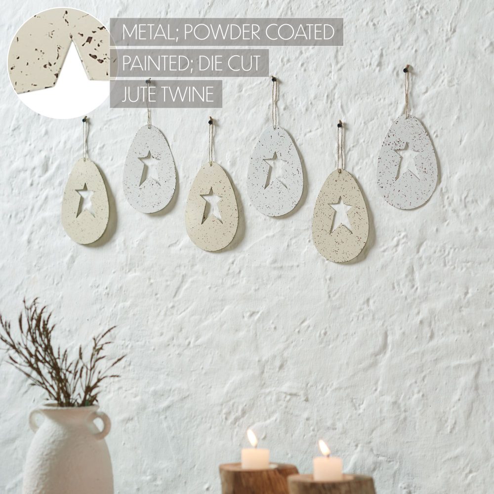 - Sku – 88624 – Spring In Bloom Galvanized Metal Easter Egg Prim Star Ornament 6.1×4.25 Set of 6 (2 Packages)