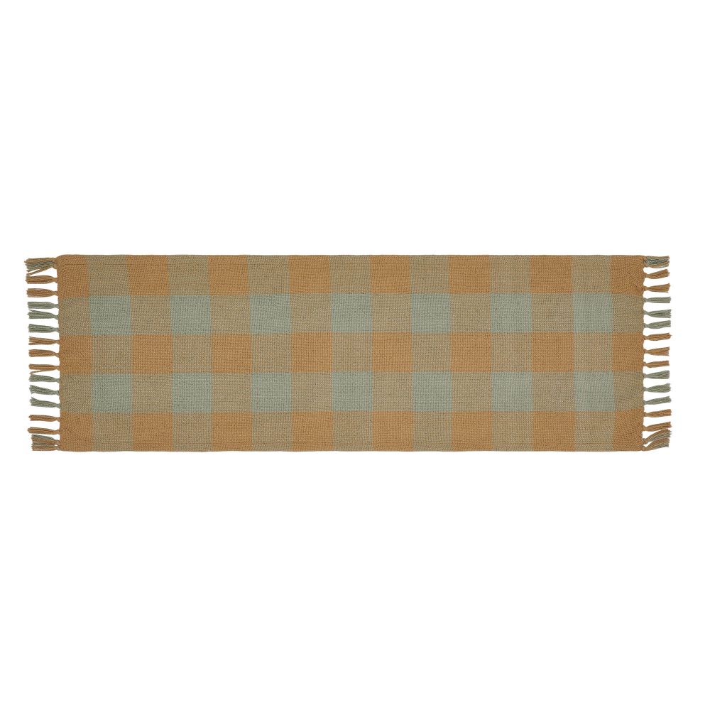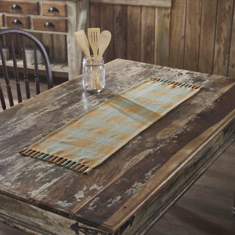 - Primitive Charm: The VHC Brands Spring In Bloom Indoor/Outdoor Runner, with its checkered design, brings a touch of primitive charm to your farmhouse-style dining or kitchen table.