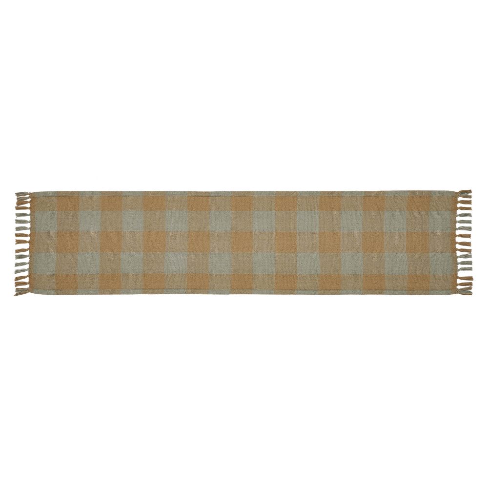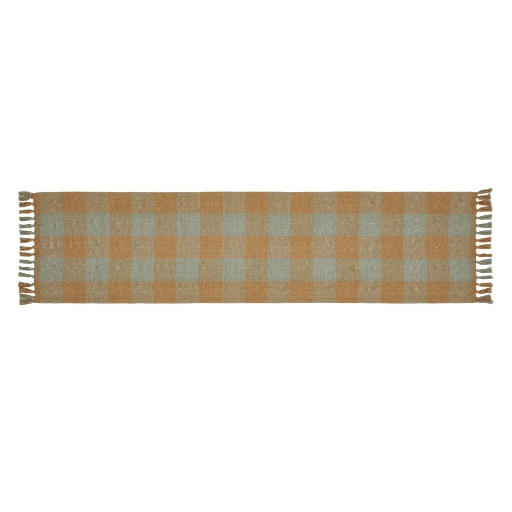 Elevate your farmhouse kitchen or dining area with the VHC Brands Spring In Bloom Indoor/Outdoor Runner. Measuring 12x48 inches, this Golden Tan and Laurel Green table runner features a charming Primitive Check pattern, adding a rustic country touch to your decor. Crafted from recycled PET, it offers both durability and eco-friendliness, suitable for indoor and outdoor use. Inspired by the tranquil beauty of the river, the Spring In Bloom Collection showcases a woven design, infusing character and warmth into your space. This versatile 12x48 runner complements small coffee tables and long dining tables, featuring mission-style accents and the trusted VHC quality. It's the perfect choice for enhancing your farmhouse style and creating a welcoming atmosphere for gatherings with family and friends. The VHC Brands Spring In Bloom Indoor/Outdoor Runner seamlessly blends style and functionality. Whether you're enjoying a quiet coffee morning or hosting friends and family, this runner sets the stage for a warm and inviting ambiance while adding a touch of country elegance to your home.