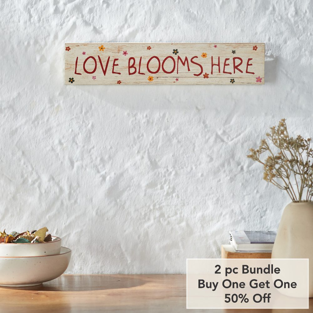 - Sku – 88584 – Spring In Bloom Love Blooms Here MDF Wall Sign 3x14x0.75 (2 Packages)