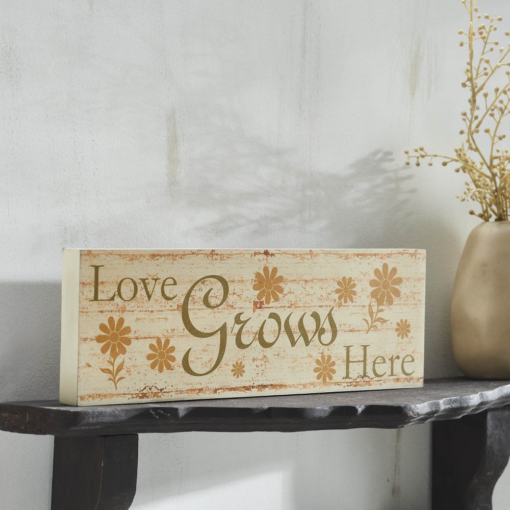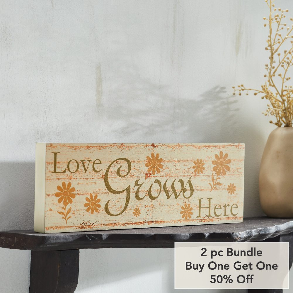 • Sku – 88571 – Spring In Bloom Love Grows Here w/ Daisies MDF Wall Sign 5x15x1 (2 Packages)