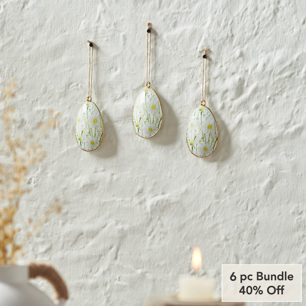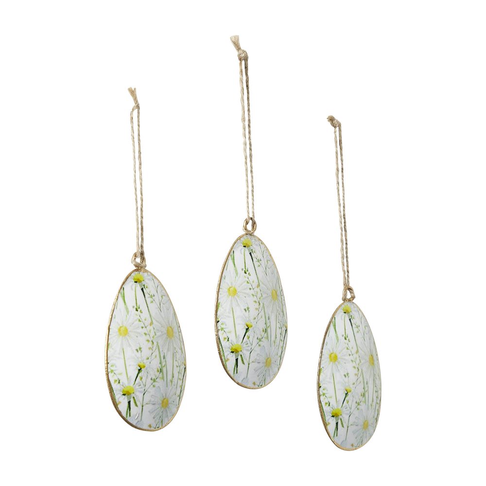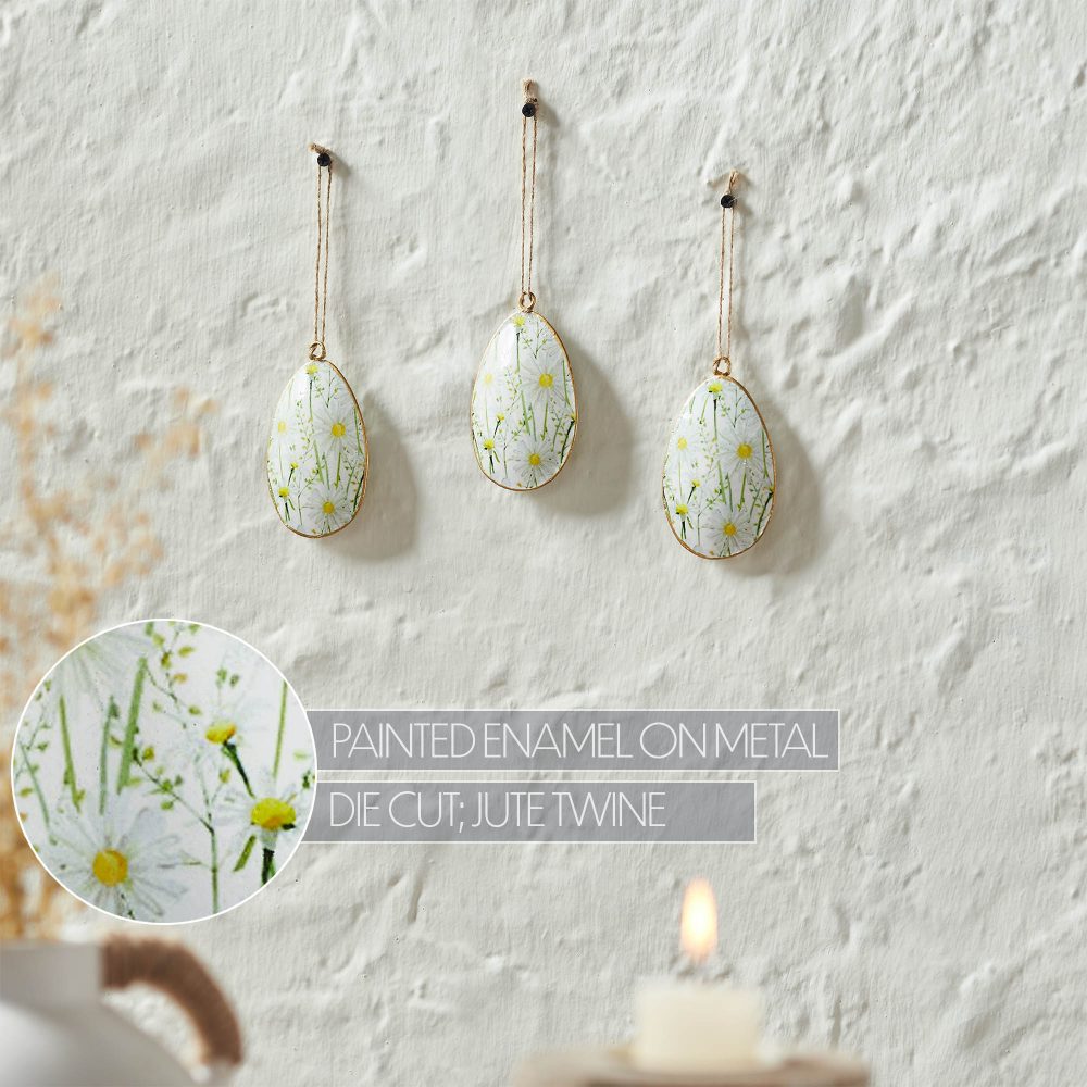 - Sku – 88637 – Spring In Bloom Metal Daisies Egg Ornament Set of 3 4×2.5 (2 Packages)