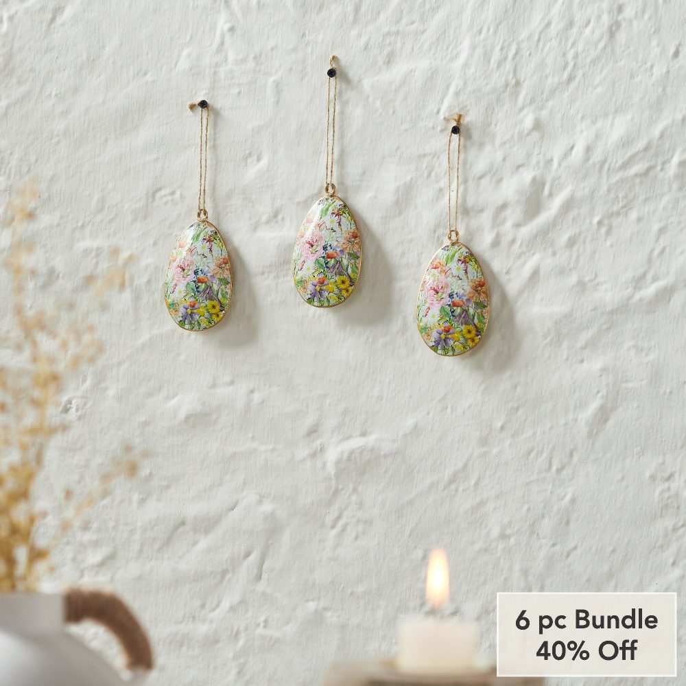 - Sku – 88636 – Spring In Bloom Metal Floral Egg Ornament Set of 3 4×2.5 (2 Packages)