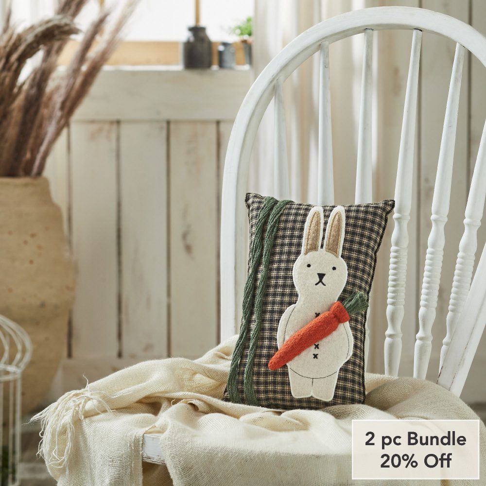 - Sku – 88432 – Spring In Bloom Primitive Bunny And Carrot Pillow 12×8 (2 Packages)