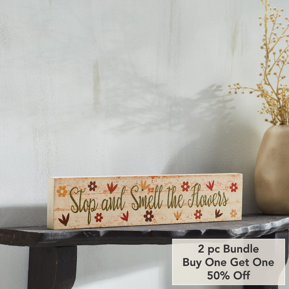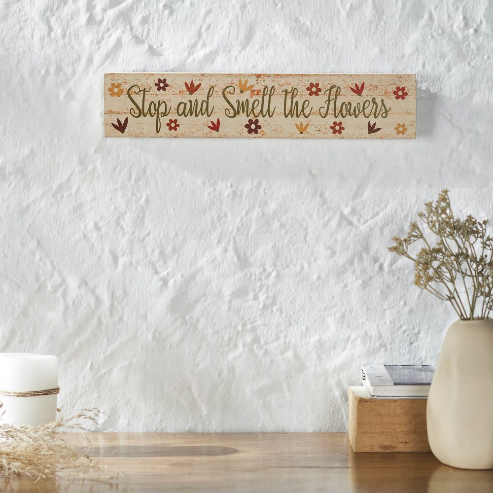 • Sku – 88596 – Spring In Bloom Stop And Smell The Flowers MDF Wall Sign 3x14x0.75 (2 Packages)