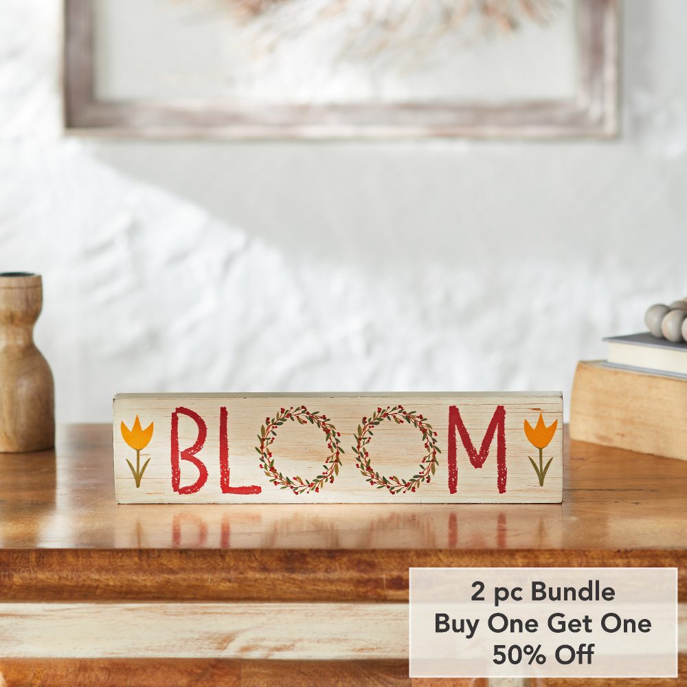 - Sku – 88573 – Spring In Bloom Tulips & BLOOM MDF Wall Sign 3x12x0.75 (2 Packages)