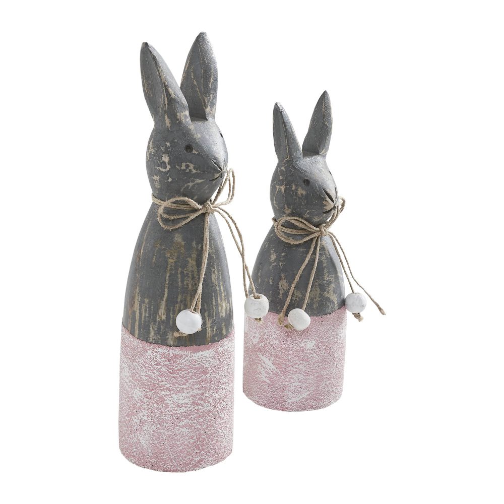 Spring In Bloom Wooden Cone Bunnies w/ Pink Base Set of 2 Sizes