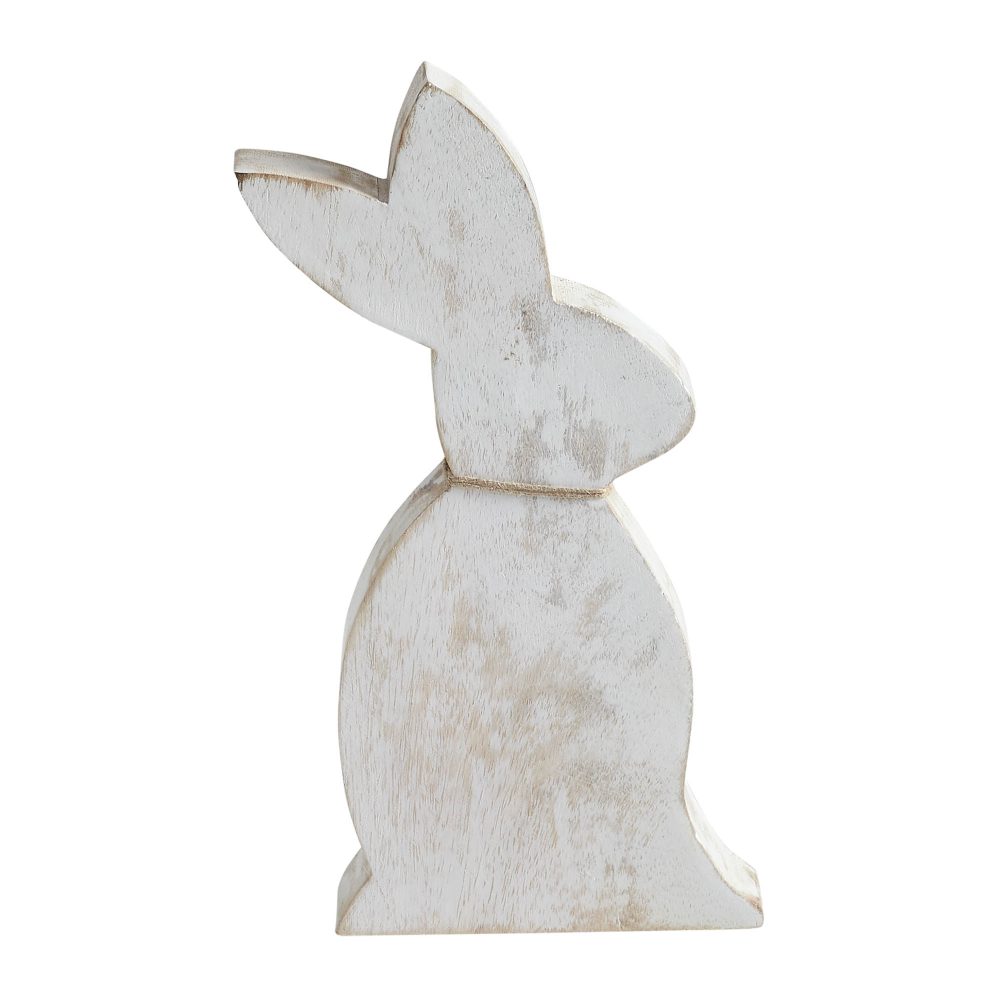 • Charming Silhouette: Distressed white wooden bunny silhouette stands upright, providing a classic and eye-catching display.