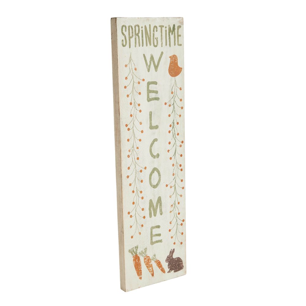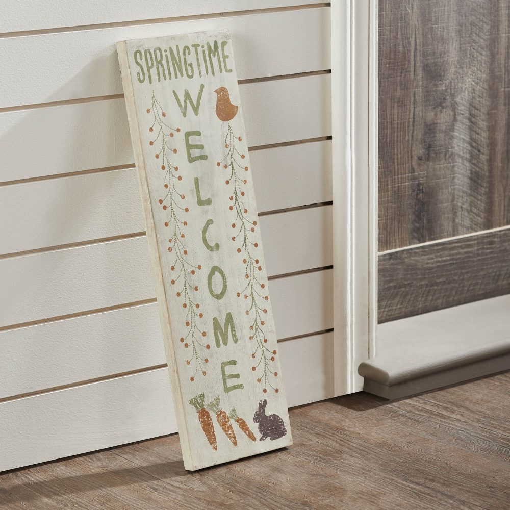 • Vibrant Design: Elevate your Easter and spring decor with this inviting 20×6-inch wooden sign from the Spring In Bloom Collection, showcasing “Springtime Welcome” with Carrots, Bunny and Chick against a captivating Light Tan backdrop.