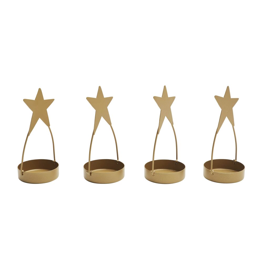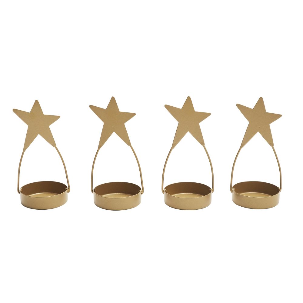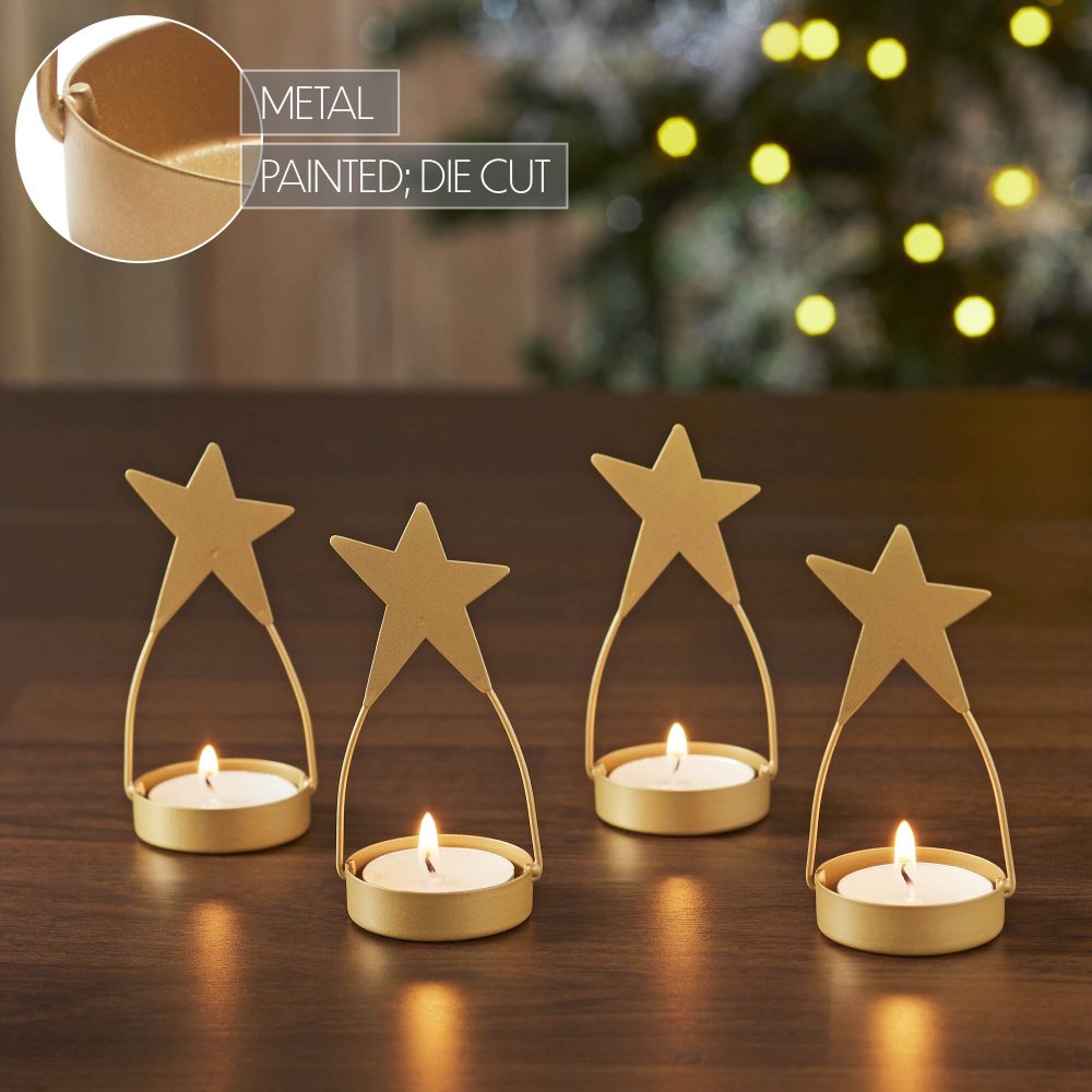 - Add a touch of rustic elegance to your primitive home decor with our set of four Metal Star Tealight Holders in a luxurious gold finish, perfect for enhancing the ambiance of your kitchen, dining table, or living room.
