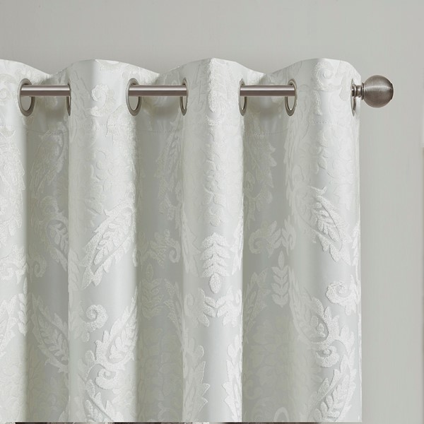 10 reviews for SunSmart Amelia Knitted Jacquard Paisley Total Blackout Grommet Top Curtain Panel in White, 50×84" SS40-0200