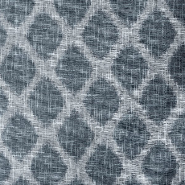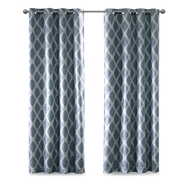 Introducing a modern and stylish take on energy efficiency, our SunSmart Blakesly Printed Ikat Blackout Panel is the perfect update to any room. Fresh and chic, this window panel features a printed navy ikat design on a textured firm base fabric, creating dimension for a cool and casual look. Finished with a two pass foamback and bonding technique, the panel is enhanced to block most sunlight and create a significant barrier to reduce outside noise. Silver grommet top detail makes it easy to hang, open, and close panels throughout the day; while fitting up to a standard 1.25" diameter rod. With considerable energy savings and a high level of added privacy, this blackout panel is perfect for home offices, family rooms, and bedrooms. Give your space a beautiful, one-of-a-kind update with this contemporary blackout window panel. Lighting level: Heavily Shaded Ambiance.