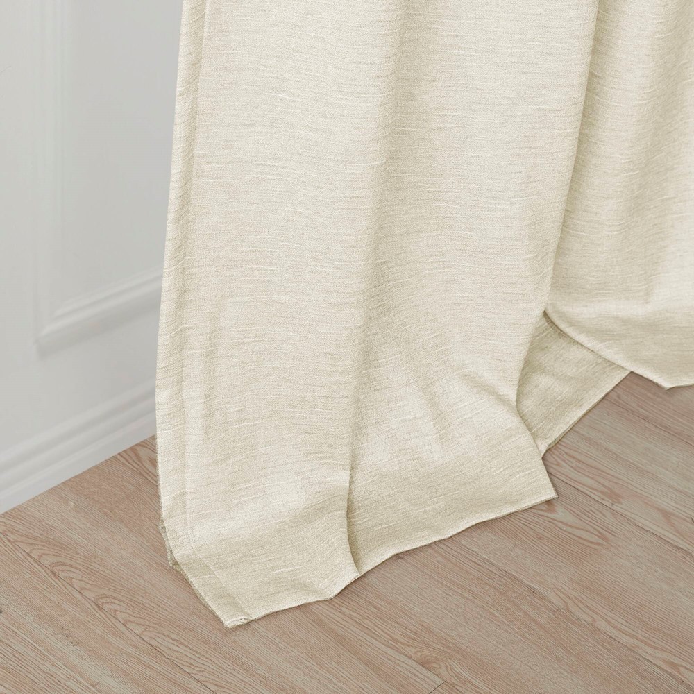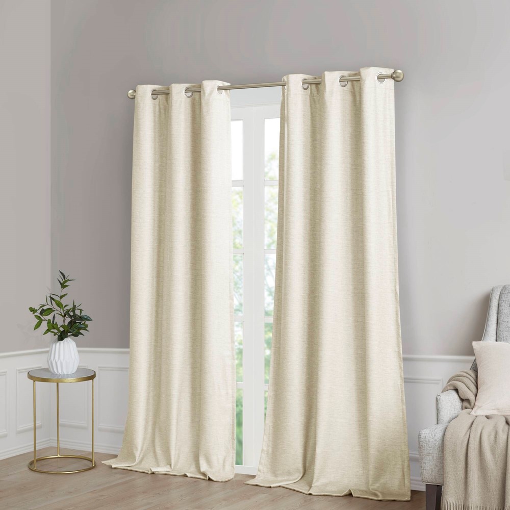 Elevate your decor with the modern style and function of our SunSmart Como Tonal Printed Faux Silk Room Darkening Panel Pair. This curtain pair flaunts a tonal hue on a faux silk textured fabric that creates a beautiful and rich modern look. Registered with OEKO-TEX certification, these curtains do not contain any harmful substances or chemicals ensuring quality comfort and wellness. Each panel features a foamback reverse with thermal technology, providing room darkening capabilities and helping to produce maximum energy savings by keeping your room the perfect temperature throughout the year. Easily hang, open, and close panels throughout the day with the silver grommet top finish; this room darkening window panel pair is perfect for use in bedrooms, media rooms, or any private space providing a darkened ambiance lighting level when curtains are fully closed.