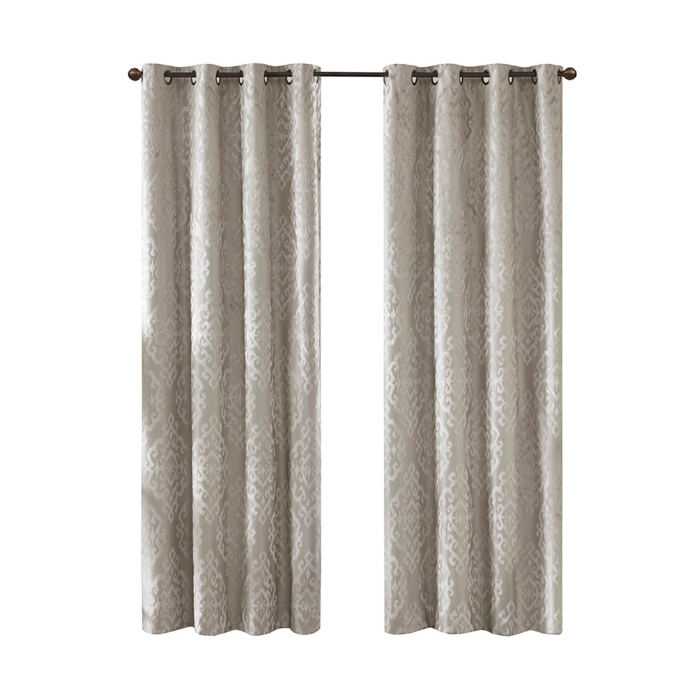 2 reviews for SunSmart Mirage Knitted Jacquard Damask Total Blackout Grommet Top Curtain Panel in Silver, 50×84″ SS40-0016