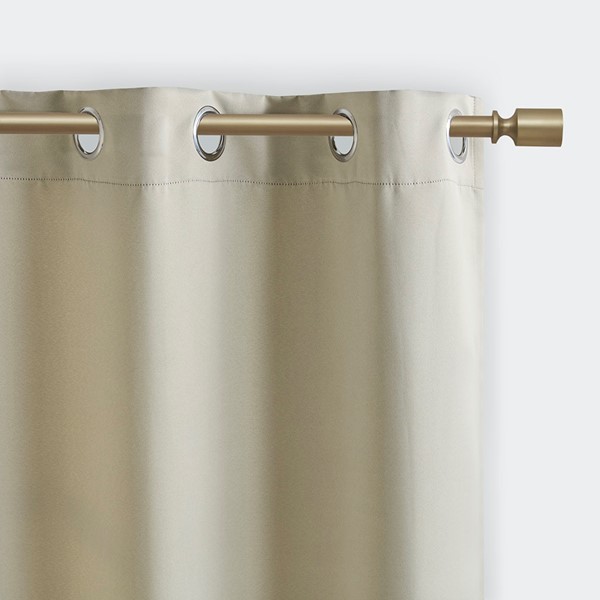 Create the perfect look in your home with the SunSmart Taren Blackout Triple Weave Panel Pair. This solid beige window panel pair features a triple weave to create a significant barrier against outside light and noise intrusion. It also offers considerable energy efficiency and savings with a high level of privacy. Easy to hang with the silver grommet top finish, this total blackout window panel pair is perfect for use in bedrooms, media rooms, or home offices. This window panel pair is also OEKO-TEX certified, meaning it does not contain any harmful substances or chemicals to ensure quality comfort and wellness. Fits up to a 1.25" diameter rod. Lighting level: Pitch Black Ambiance.