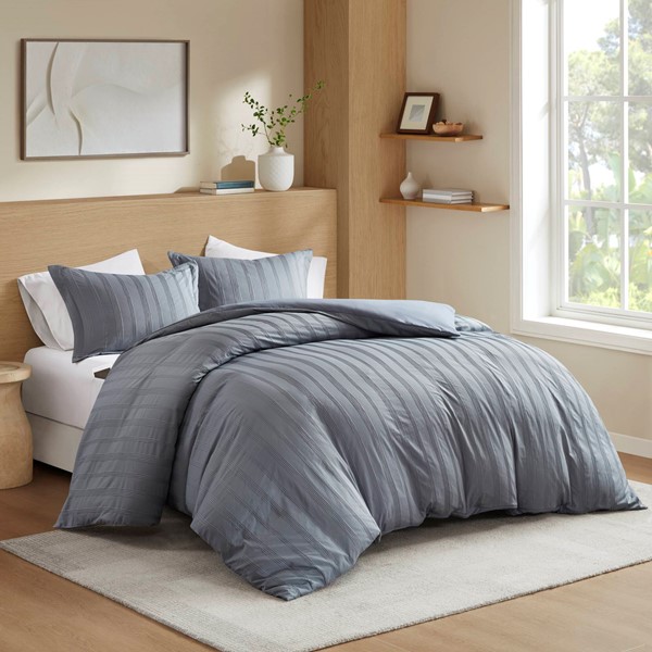 The duvet cover features a hidden zipper for easy insert changes and corner ties to keep everything securely in place. The set includes the duvet cover and matching shams — perfect for layering with your favorite insert.