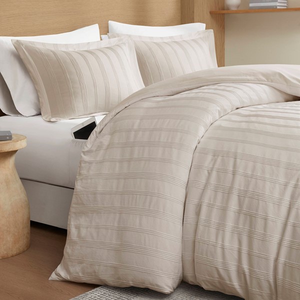 Super Listing Logan Striped Reversible Pintuck Pleated Duvet Set in Neutral, King AM12-0586