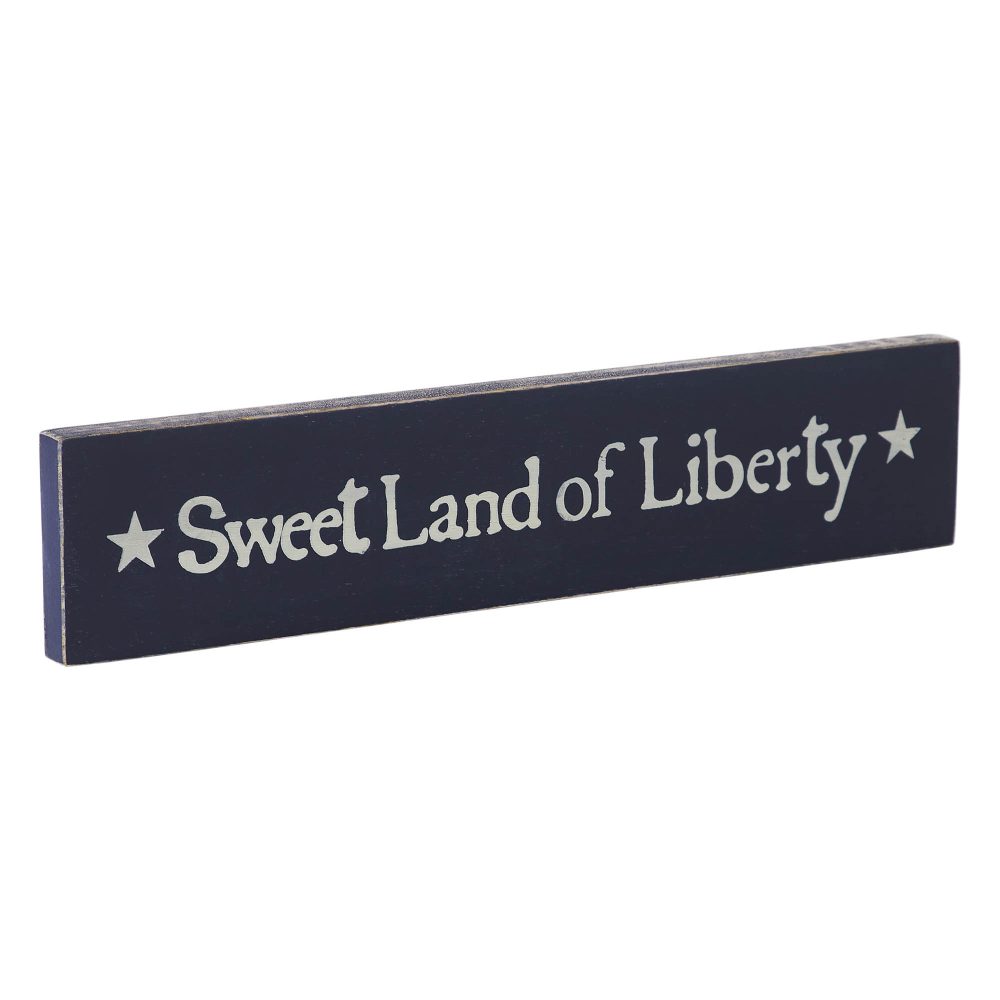 - Sweet Land of Liberty Wooden Sign: Embrace the patriotic spirit with the VHC Brands Sweet Land of Liberty Blue Wooden Sign, a captivating piece measuring 2.75×13 inches. Crafted from high-quality tropical wood, this sign encapsulates the essence of freedom and celebration.