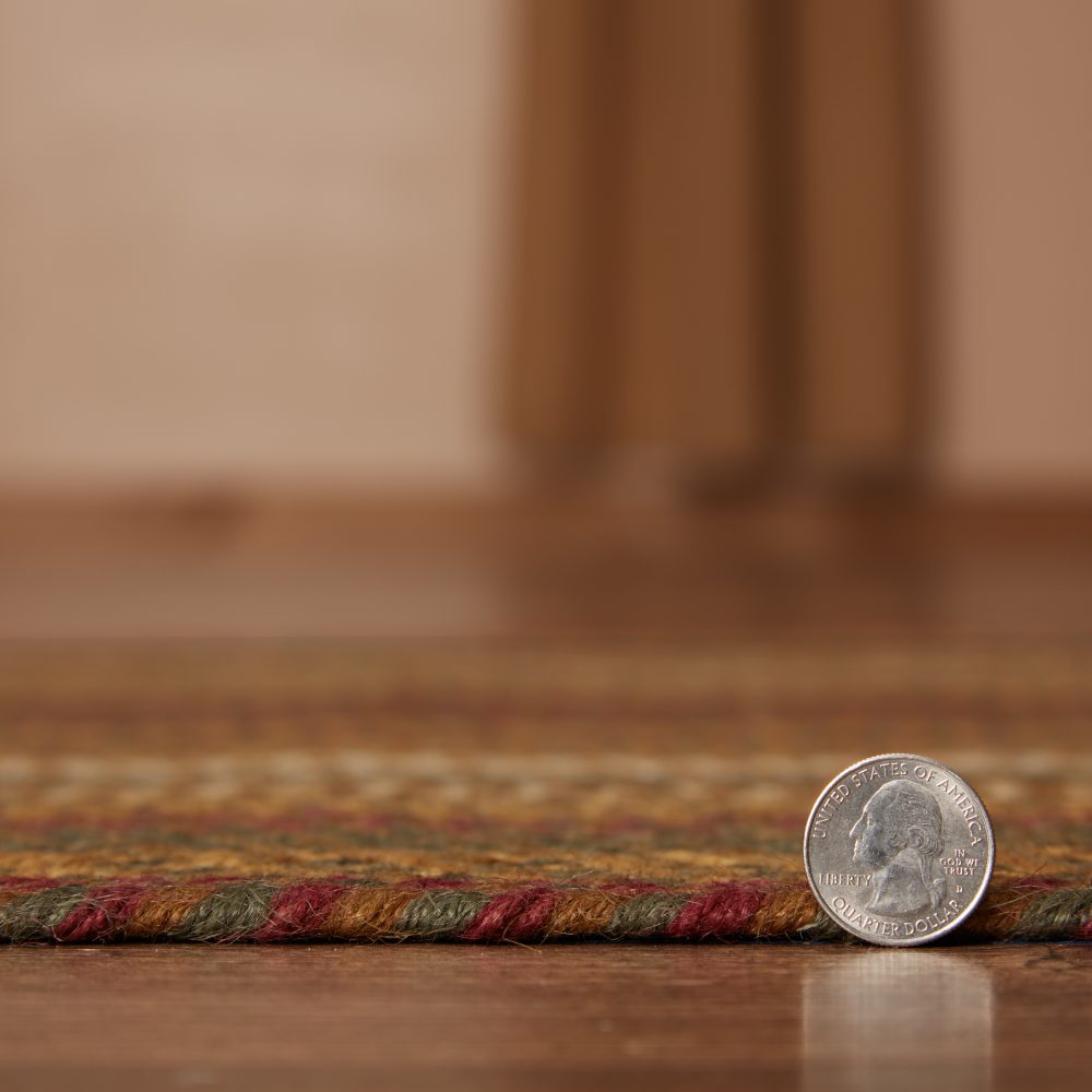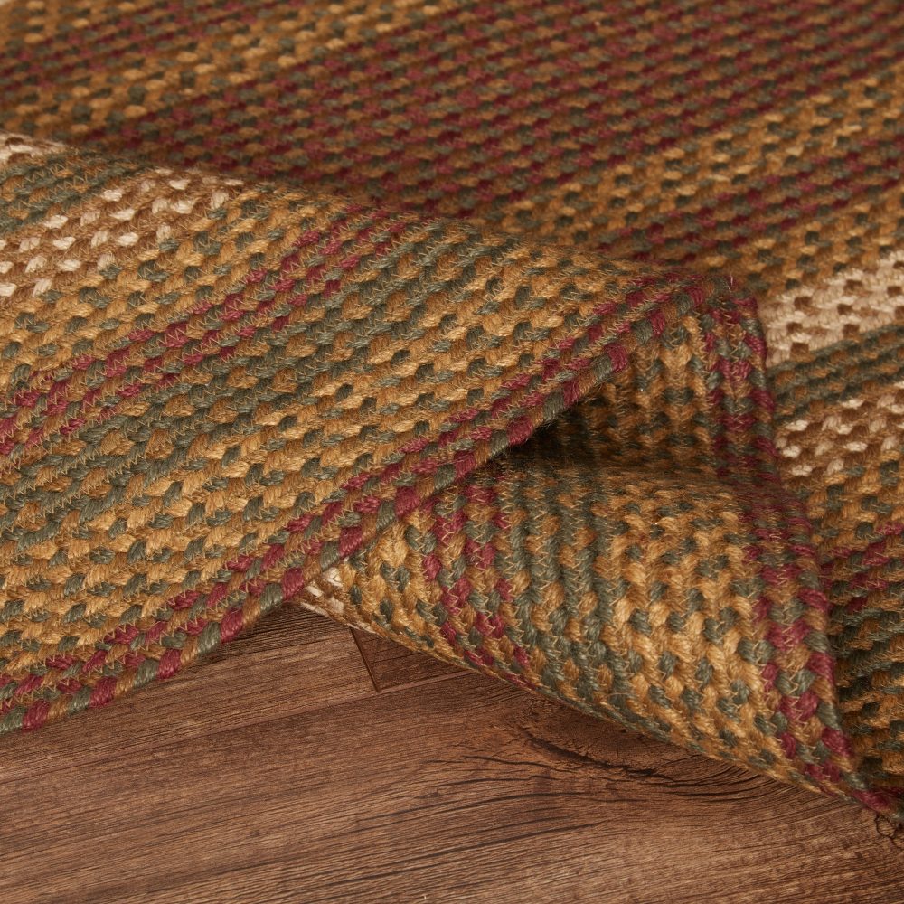Create a warm, homey feeling with deep primitive colors in a curl-resistant jute blend that adds style and safety anywhere a large accent rug is needed. The Tea Cabin Jute Rug measures 36x60 inches and features a classic oval shape and tight braids constructed with a durable jute blend. The special blend relaxes faster and stays flat. The included PVC mat makes sure your beautifully braided jute rug stays exactly where it should. Features a blend moss green, crimson red, and soft creme for a muted, rustic look that complements a wide array of primitive country decor.