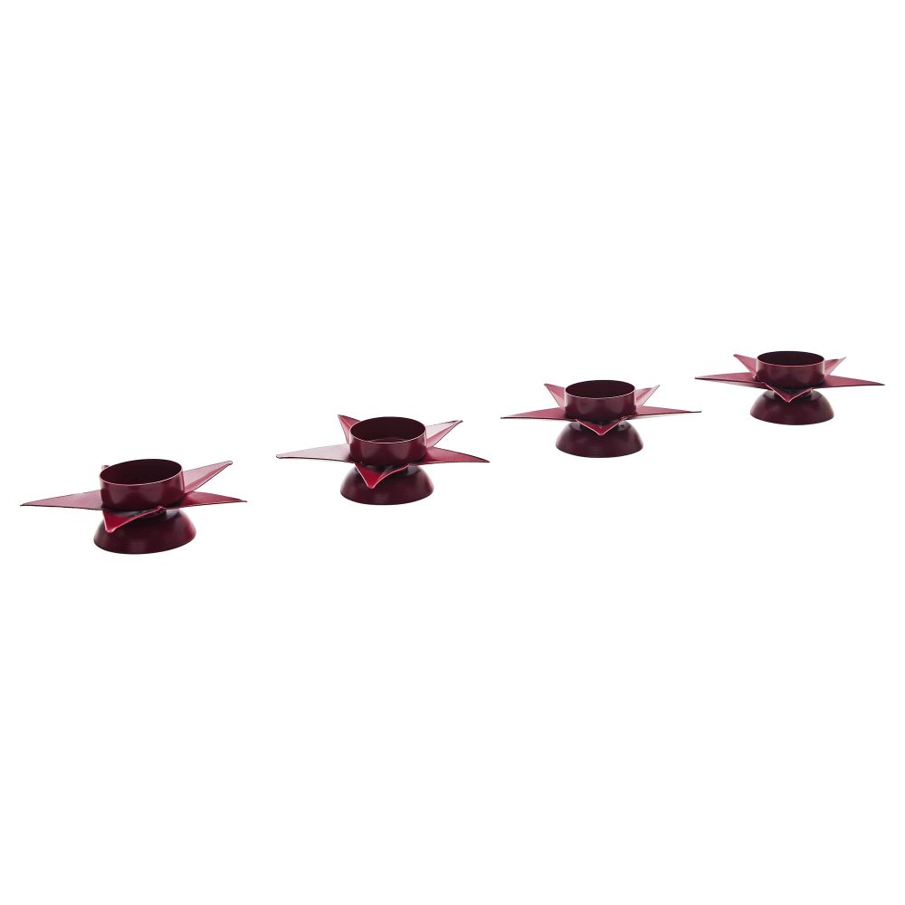 - Add a touch of rustic charm to your home decor with this set of 4 Metal Tealight Holders, featuring a star-shaped design in a rich burgundy color.
