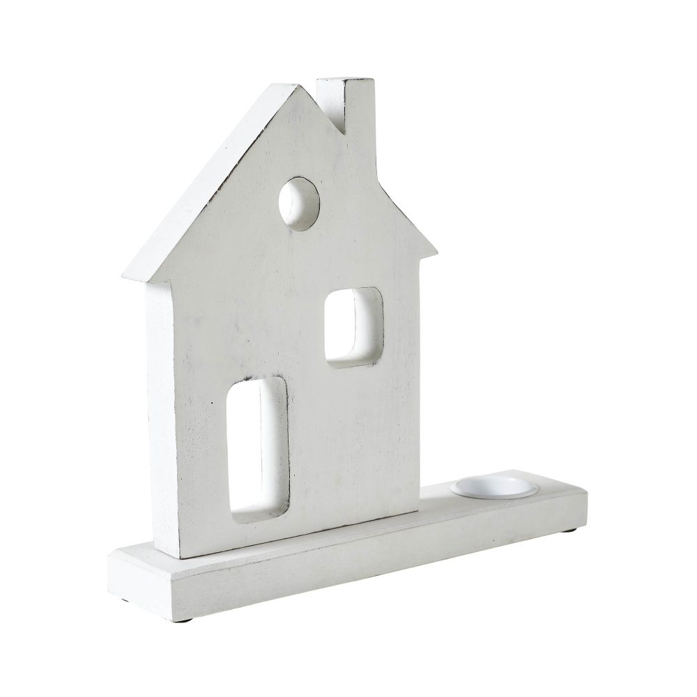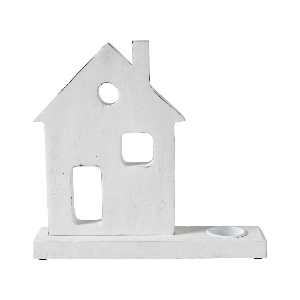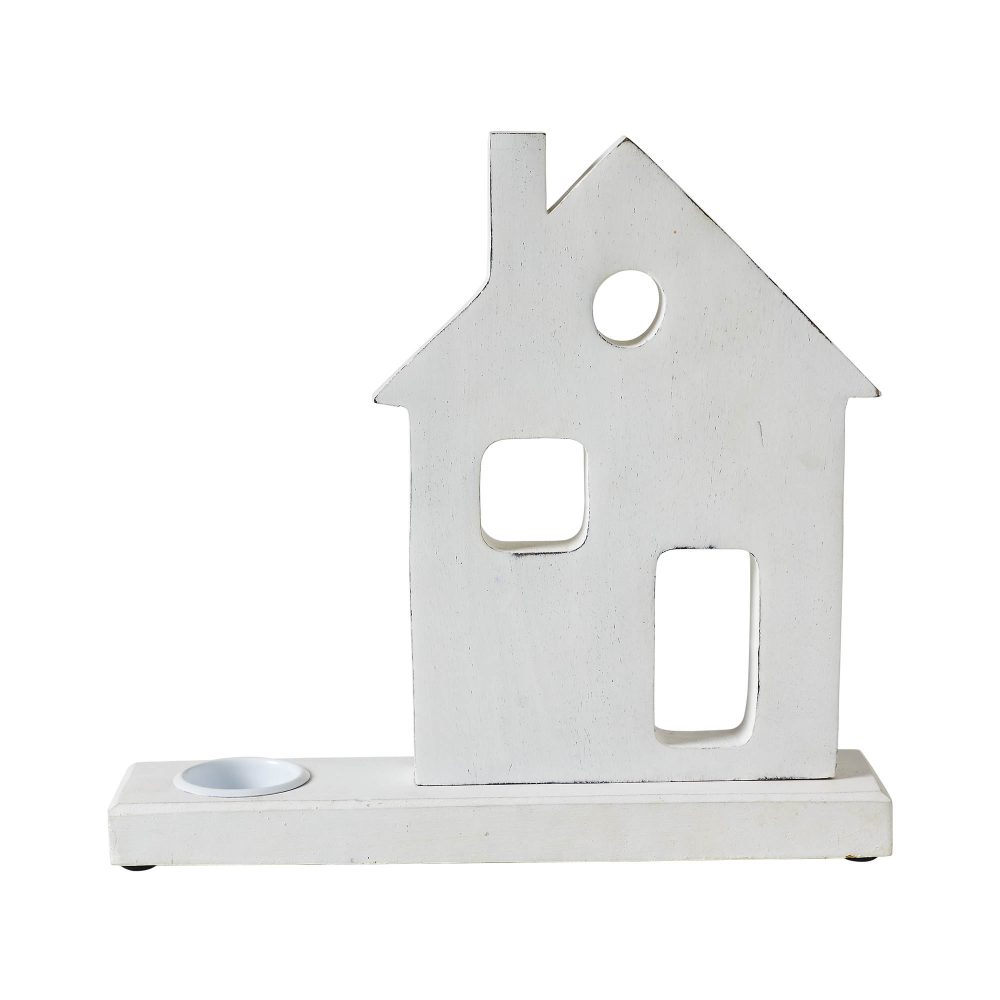 - Illuminate your home with the rustic charm of our Tropical Wood Tealight Holder, featuring a quaint Village House design crafted from sturdy tropical wood, measuring 11×10.25×2.5 inches.