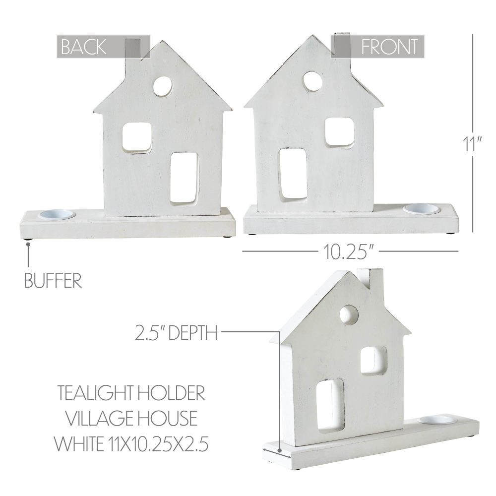 Elevate the charm of your home decor with the VHC Brands Tropical Wood Tealight Holder, showcasing a delightful Cutout Village House design in an elegant Antique White finish. Crafted from durable tropical wood, this candle holder embodies the essence of primitive and rustic aesthetics, perfect for enhancing your kitchen, dining table, entryway, or living room decor. The intricate village house cutout adds a touch of quaint allure, while the distressed appearance lends an authentic primitive feel, making it a captivating accent piece for any room. Measuring 11x10.25x2.5 inches, this tealight holder offers ample space for a standard tealight candle, casting a gentle and inviting glow to illuminate your surroundings with warmth and ambiance. Its versatile size allows for various display options, whether showcased individually as a statement piece or grouped together for a charming centerpiece arrangement. Maintaining its pristine appearance is effortless, as you can simply wipe the holder clean with a soft cloth, ensuring it remains a focal point of your decor for years to come. However, exercise caution by refraining from touching or moving the holder while warm or when a candle is lit, and always allow it to cool down before handling to prevent accidents. As with any candle holder, it's essential to keep this Village House tealight holder out of the reach of children and away from flammable objects for safety. Embrace the simplicity and rustic elegance of the VHC Brands Tropical Wood Tealight Holder, and let its primitive charm transform your home into a cozy retreat. Whether you're hosting gatherings or enjoying quiet evenings, this exquisite candle holder will infuse your space with character and warmth, creating an inviting atmosphere for family and guests alike.