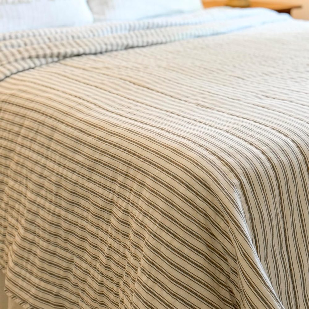 Timeless Ticking Gray Queen Quilt 90Lx90W