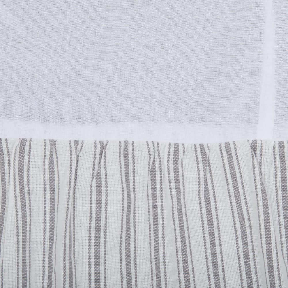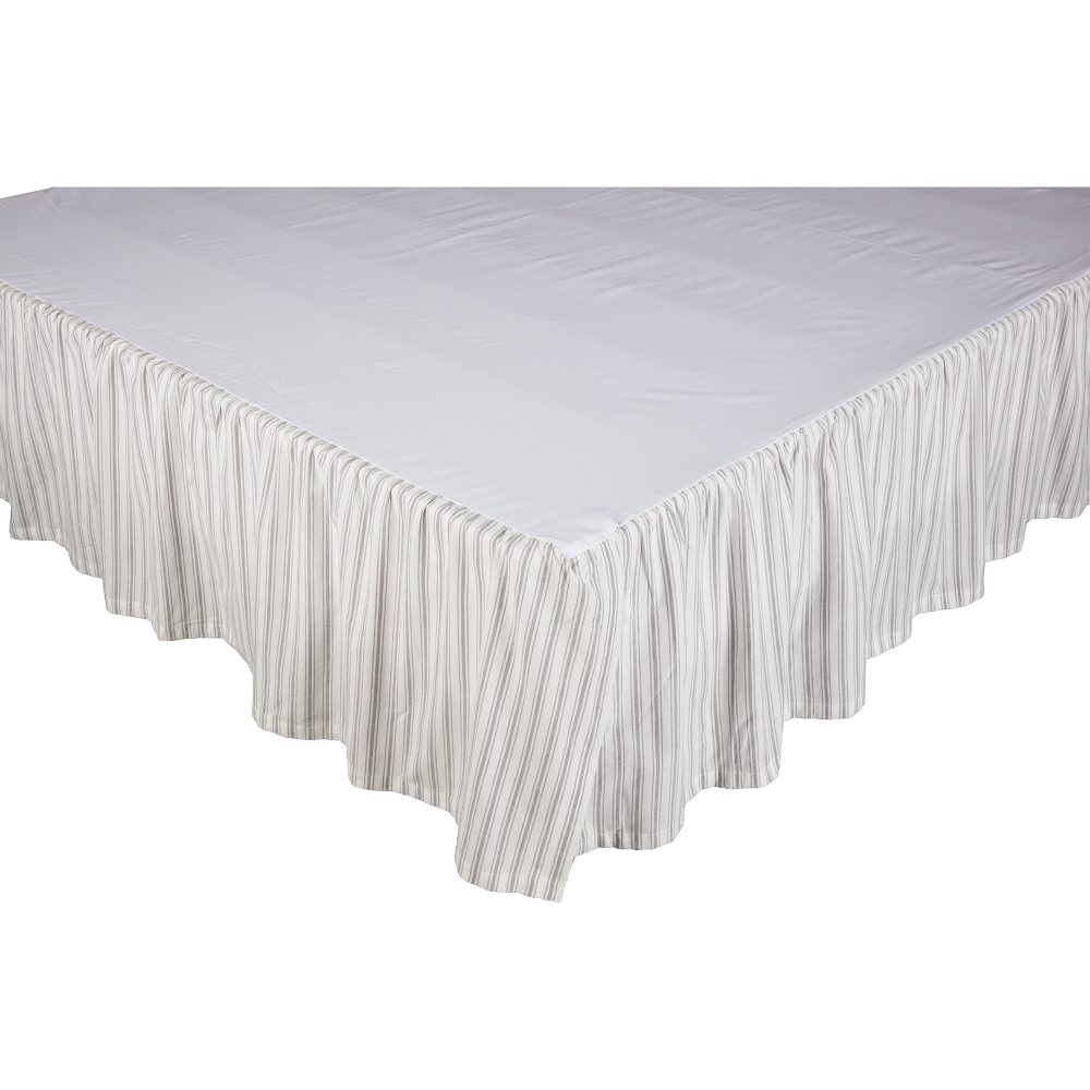 Nothing says farmhouse chic quite so clearly as the perfectly tailored stripes of our Timeless Ticking fabric. In this classic design, one main stripe is flanked by thinner stripes on either side, feathering out the look, creating a softly tailored style. Dove Gray combines with restful, creamy white in a classic striped pattern that is calming, charming, and familiar. Nonstop farmhouse style with a feminine flair is easily achieved when you bring home this fresh and casually elegant ticking fabric, enhanced and softened with generous ruffles. The bed skirt brings softness and flirty flounce with fabric gently gathered into ruffles that cascade toward the floor from the deck fabric. The flowing ruffles create volume and dimension. Adding the skirt to your bedding ensemble ensures that you'll have the bedframe fully hidden with luxurious fabric, even if the bedspread is pulled back or the bed is unmade.
