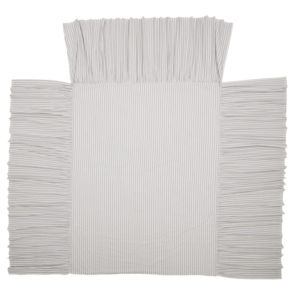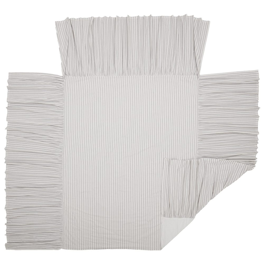 Timeless Ticking Gray Ruffled King Bedspread 80Lx76W+27